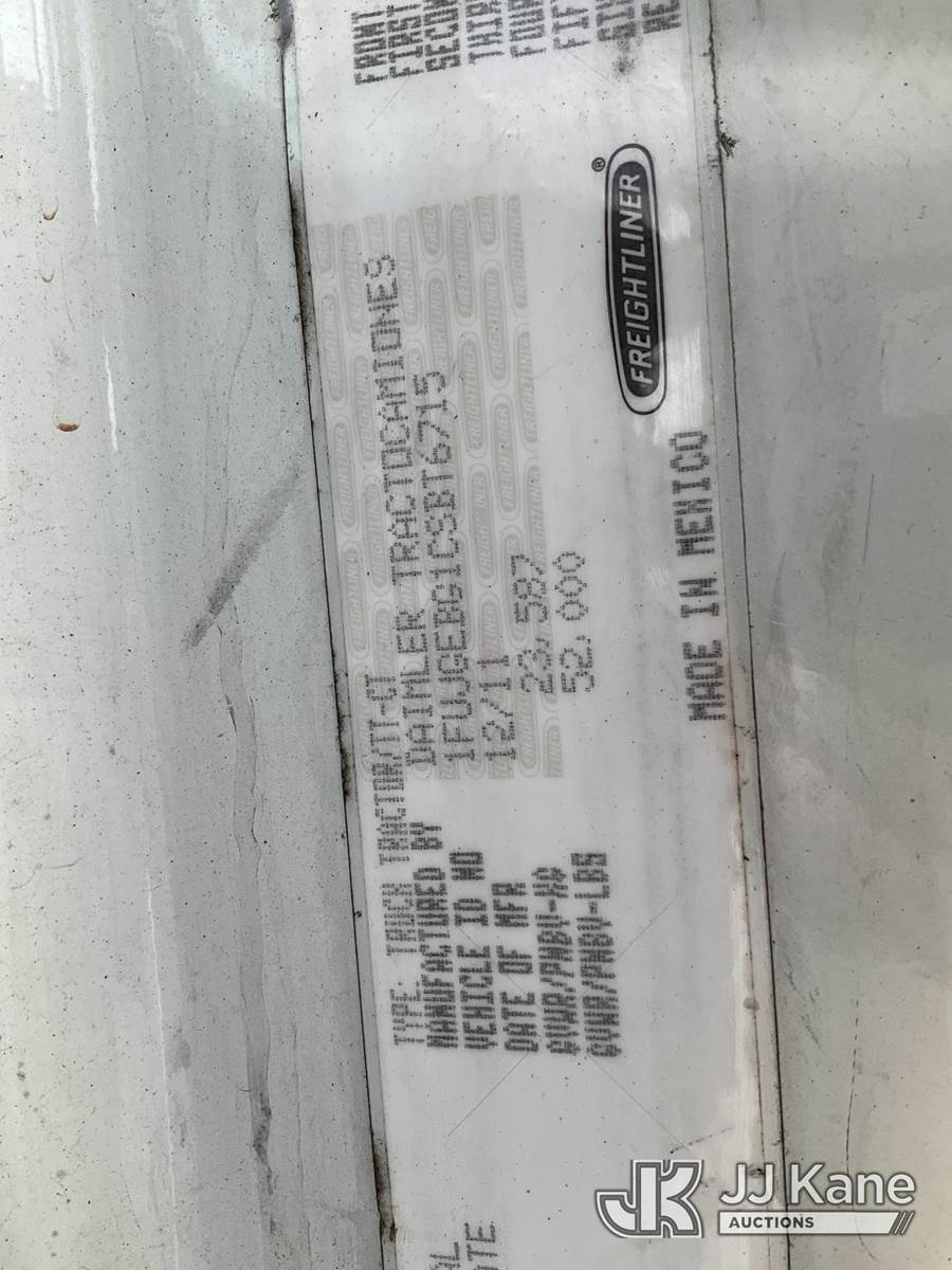 2012 Freightliner Cascadia 125 T/A Truck Tractor, 14.9L 10-spd, diesel, A/C, (537,459 miles) (Runs & Moves) (Removal is by Appointment Only, Buyer MUST make a appointment prior to picking up, Buyer/Transporter Must have PAID IN FULL RELEASE. No onsite assistance available, Please Come prepared.) This is a Titled Item NOTE: This unit is being sold AS IS/WHERE IS via Timed Auction and is located in Wells, ME. Inspection & preview days for this unit are by appointment only; please contact us at contact@jjkane.com or 84-Go-JJKane for more details. (Buyer is responsible for removal. Assistance by consignor or JJ Kane Auctioneers is not assured.)