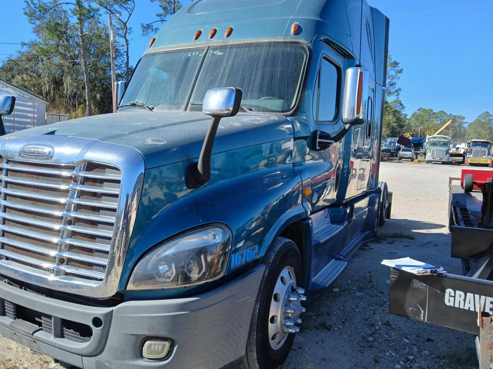 2012 Freightliner Columbia sleeper. Detroit 455 h.p. diesel. 908K. Clean interior w/ Sleeper and storage quarters. Good rubber. 33,000 GVWR.