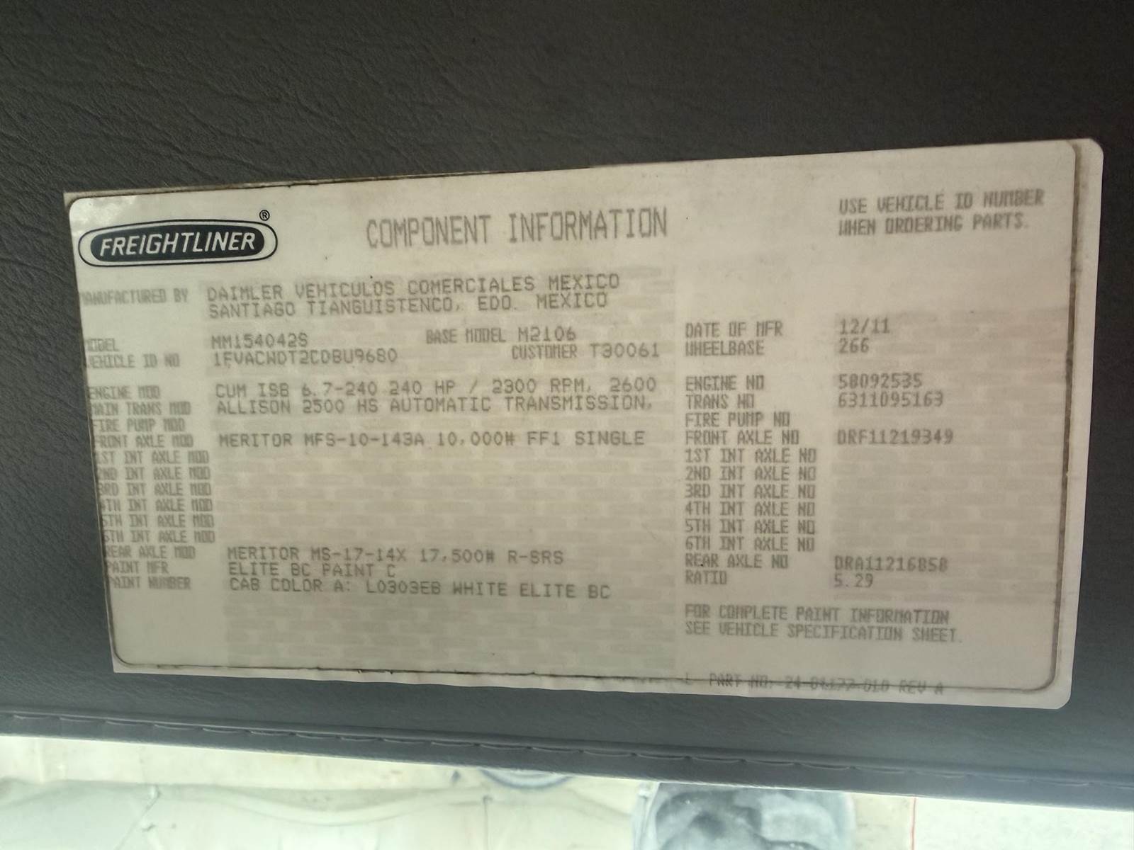 186220 Miles, Engine: CUMMINS ISB6.7, 240 HP, Fuel Type: Diesel, 6 Speed Automatic Transmission, Drive: 4x2, Spring Suspension, Wheel Base: 266, Single Rear Axles