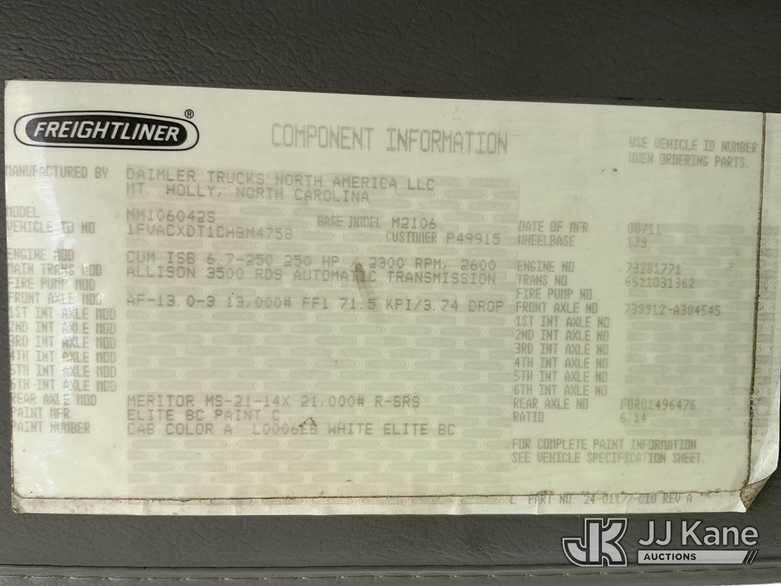 2012 Freightliner M2 106 Lube Truck, Cummins ISB 6.7L diesel, Auto, A/C, with Miller Trailblazer 302 Air Pak welder/generator, air compressor w/hose reel, waste oil recovery system & 2 product tanks w/hose reel, (94,079 miles) (Duke Unit) (Runs & Moves) This is a Titled Item NOTE: This unit is being sold AS IS/WHERE IS via Timed Auction and is located in China Grove, NC. Inspection & preview days for this unit are the 2 business days prior to the first day of items closing for this auction, item is located at 820 E NC Hwy 152 China Grove, NC 28023 and hours of operations are 8a-4p. For pre-sale questions, please contact Office Staff @ (704) 674-1113. (Buyer is responsible for removal. Assistance by consignor or JJ Kane Auctions is not assured.)