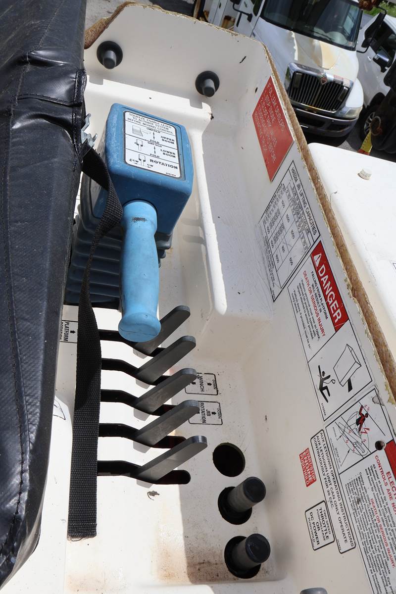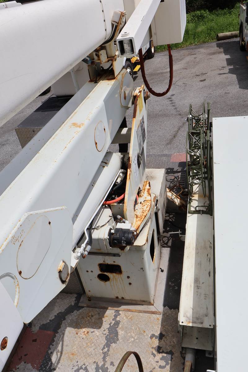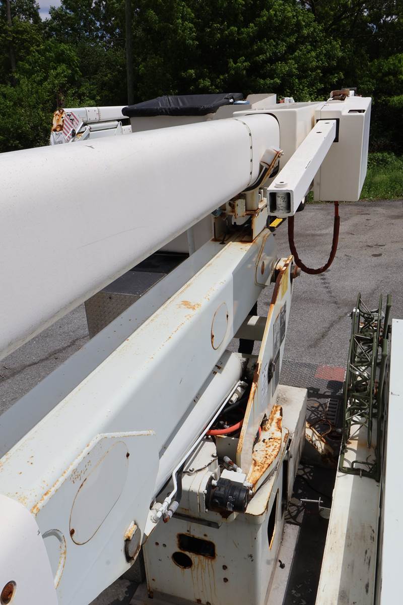 1997 International 55ft Bucket Truck. Altec Model A755, Side reach 38', Platform height 55.8', Boom articulation 0* to 108*, 7.3 liter...