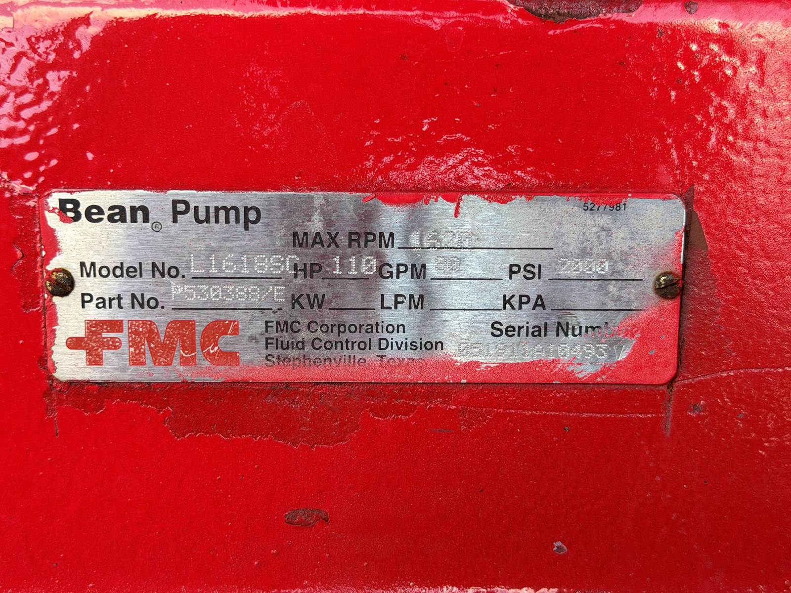 80 GPM @ 2,000 PSI FMC Bean Pump
