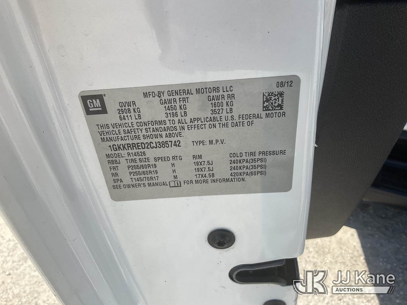 2012 GMC Acadia 4-Door Sport Utility Vehicle, 3.6L V6 DOHC 24V gas, 6-Speed Automatic, A/C, (139,701 miles) (Runs & Moves) (FL Residents Purchasing Titled Items - tax, title & registration fees will be collected at the maximum rate of $400.00 under 25,999 and $800.00 for Over 26,000 and $250.00 trailers - Proof of insurance is mandatory; Out of State Residents Purchasing Title Items - tax will be collected based upon your state rate.) This is a Titled Item NOTE: This unit is being sold AS IS/WHERE IS via Timed Auction and is located in Thonotosassa, FL. Inspection & preview days for this unit are the 2 business days prior to the first day of items closing for this auction, item is located at 11720 N US 301 Thonotosassa, Fl 33592 and hours of operations are 8a-4p. For pre-sale questions, please contact Office Staff @ (813) 986-2485. (Buyer is responsible for removal. Assistance by consignor or JJ Kane Auctions is not assured.)