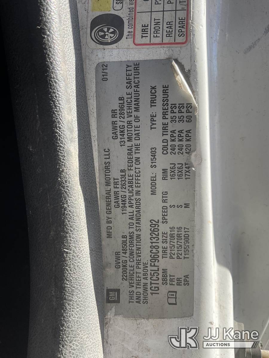2012 GMC Canyon Dump Truck, 4-cyl gas, Auto, A/C, with 3 Yard Dump, (103,446 miles) (Runs, Moves & Dump Operates) (Missing Fuel Cap, Runs Rough) (Bidding Restricted to Licensed Vehicle Dealers Only), This is a Titled Item NOTE: This unit is being sold AS IS/WHERE IS via Timed Auction and is located in Jurupa Valley, CA. Inspection & preview days for this unit are the 2 business days prior to the first day of items closing for this auction, item is located at 4510 Muth Way Jurupa Valley, CA 92509 and hours of operations are 8a-4p. For pre-sale questions, please contact please contact Office Staff @ (310) 353-7140. Dealer License Number 45696. (Buyer is responsible for removal. Assistance by consignor or JJ Kane Auctions is not assured.)