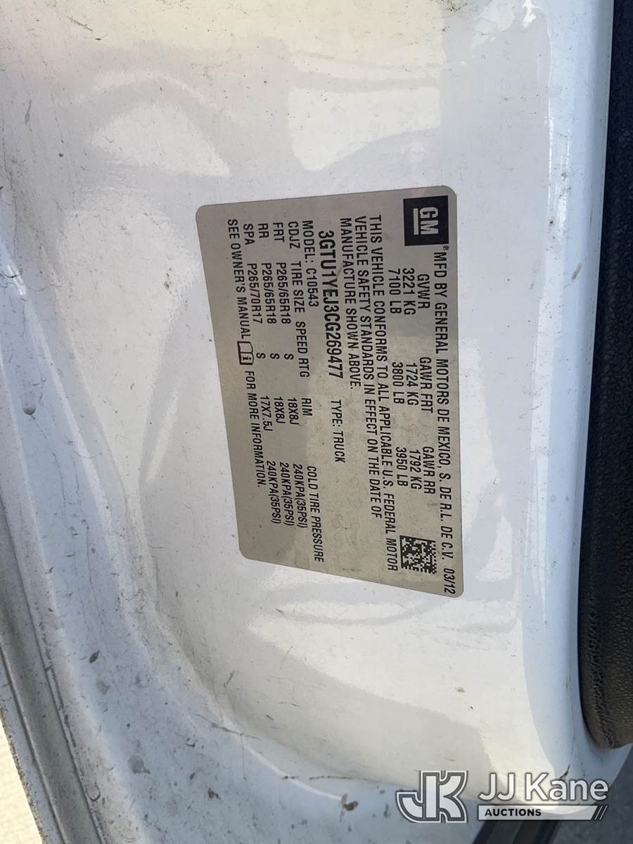 2012 GMC Sierra Hybrid Crew-Cab Pickup Truck, s/n 3GTU1YEJ3CG269477, 6.0L V8 OHV 16V RWD, HYBRID, 4-Speed Automatic, A/C, with Safety light, tool boxes, tow package, (154,911 miles) (Runs & Moves, Check Engine Light) (Bidding Restricted to Licensed Vehicle Dealers Only), This is a Titled Item NOTE: This unit is being sold AS IS/WHERE IS via Timed Auction and is located in Dixon, CA. Inspection & preview days for this unit are the 2 business days prior to the first day of items closing for this auction, item is located at 8668 Sparling Ln Dixon, CA 95620 and hours of operations are 8a-4p. For pre-sale questions, please contact JJ Kane Staff at (707) 678-8060 (dixon@jjkane.com). Dealer License Number 45696. (Buyer is responsible for removal. Assistance by consignor or JJ Kane Auctions is not assured.)