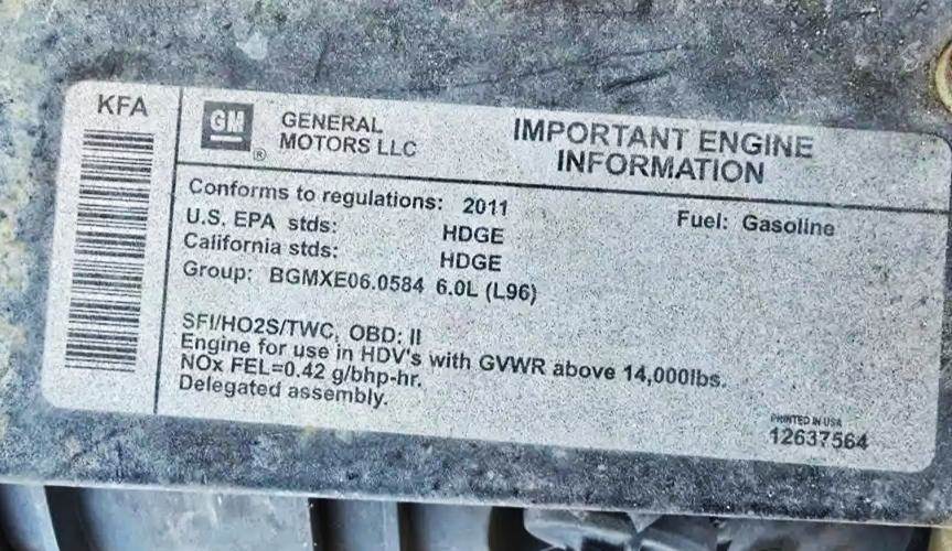 GM V8, 6.0L, GAS; 308 HP, Need to verify HP & ESN