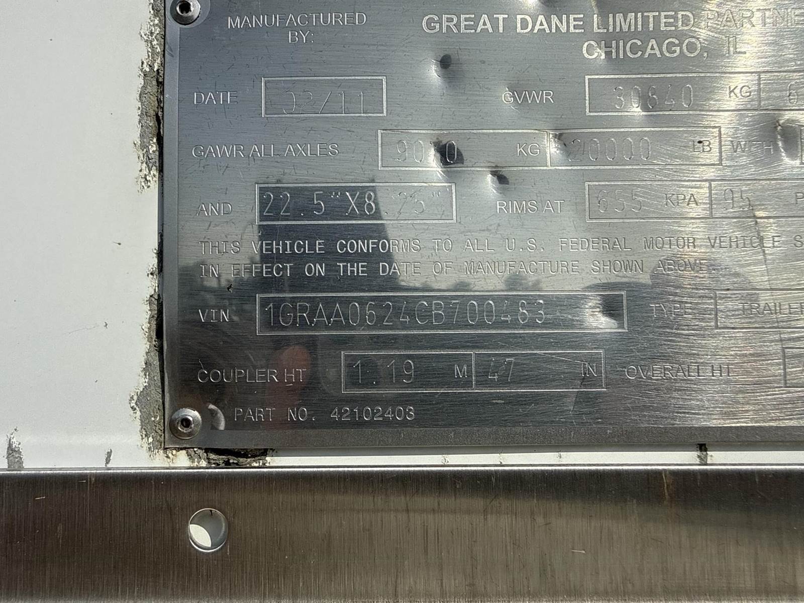 GOOD TRAILER, GOOD TIRES, CLEAN, GOOD FLOOR, GOOD ROLL DOOR!