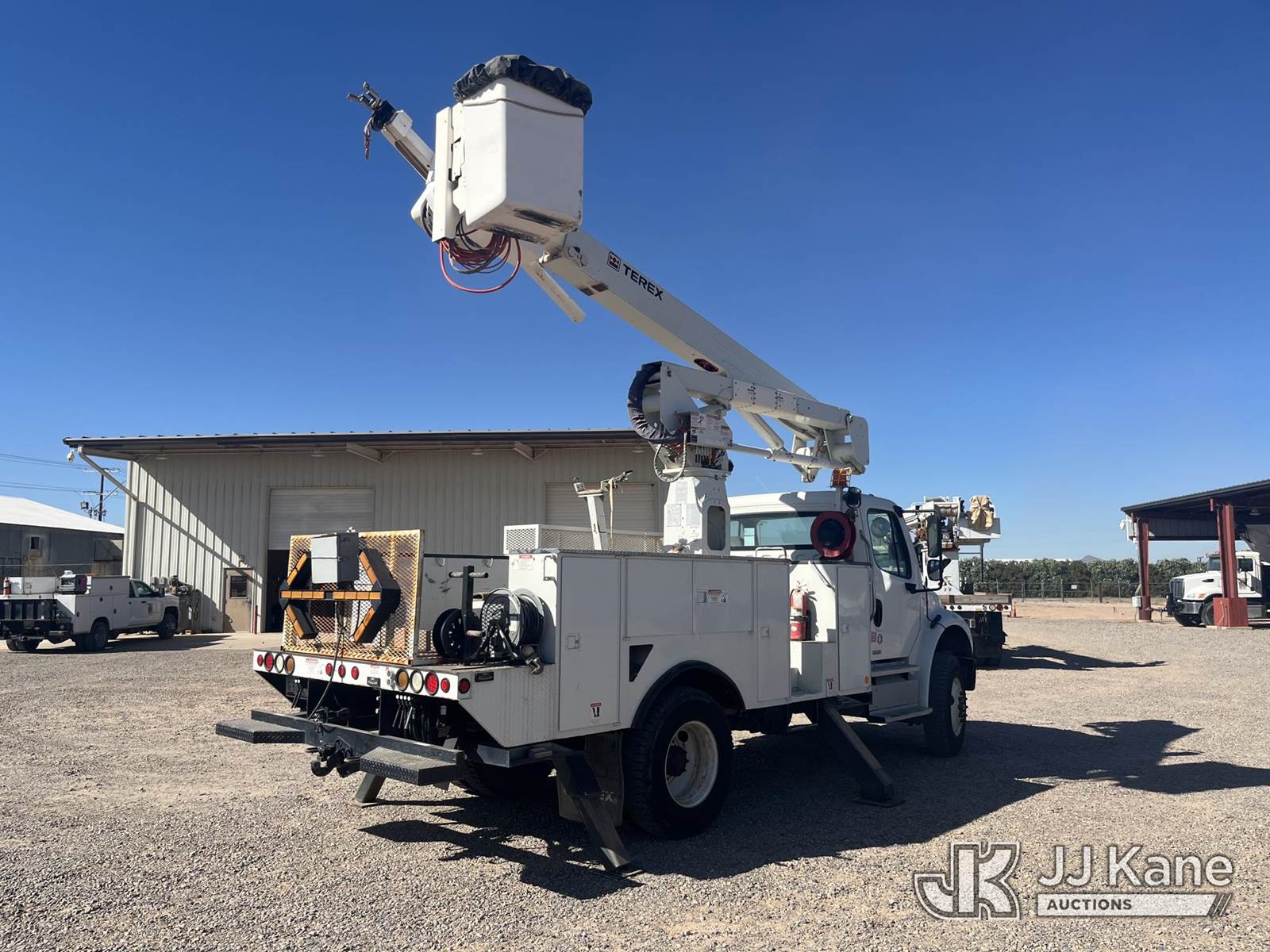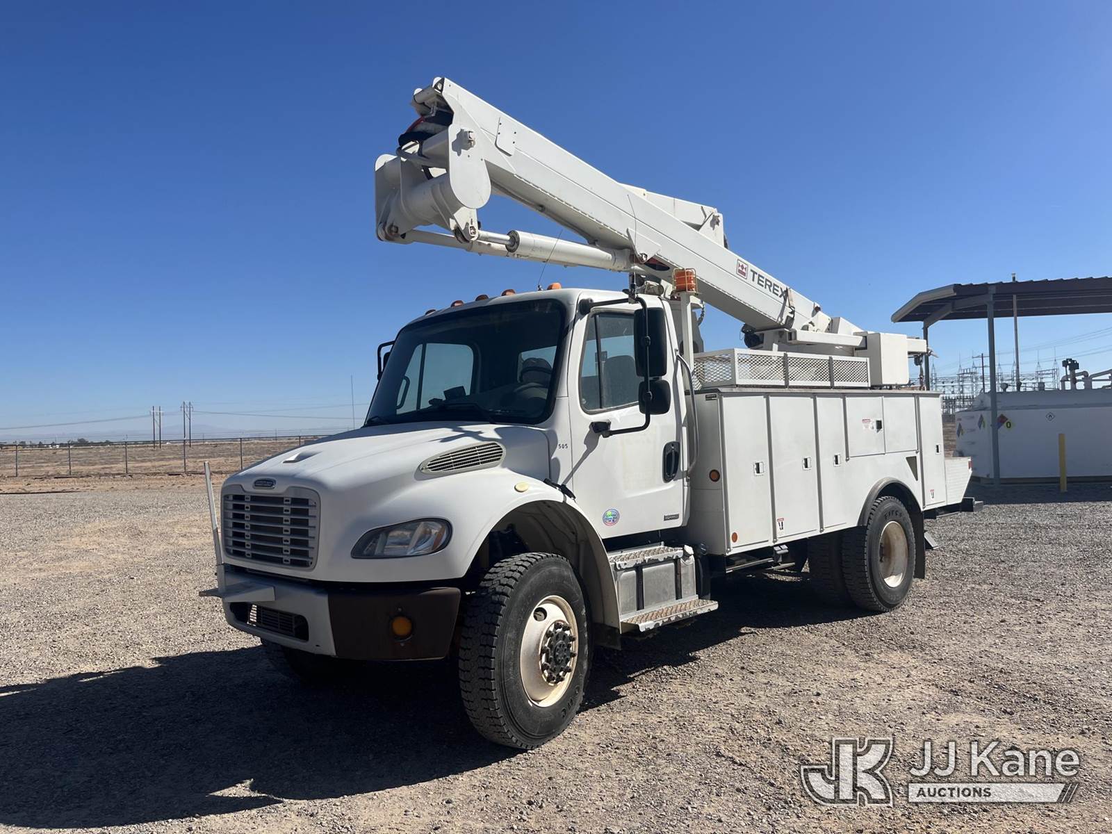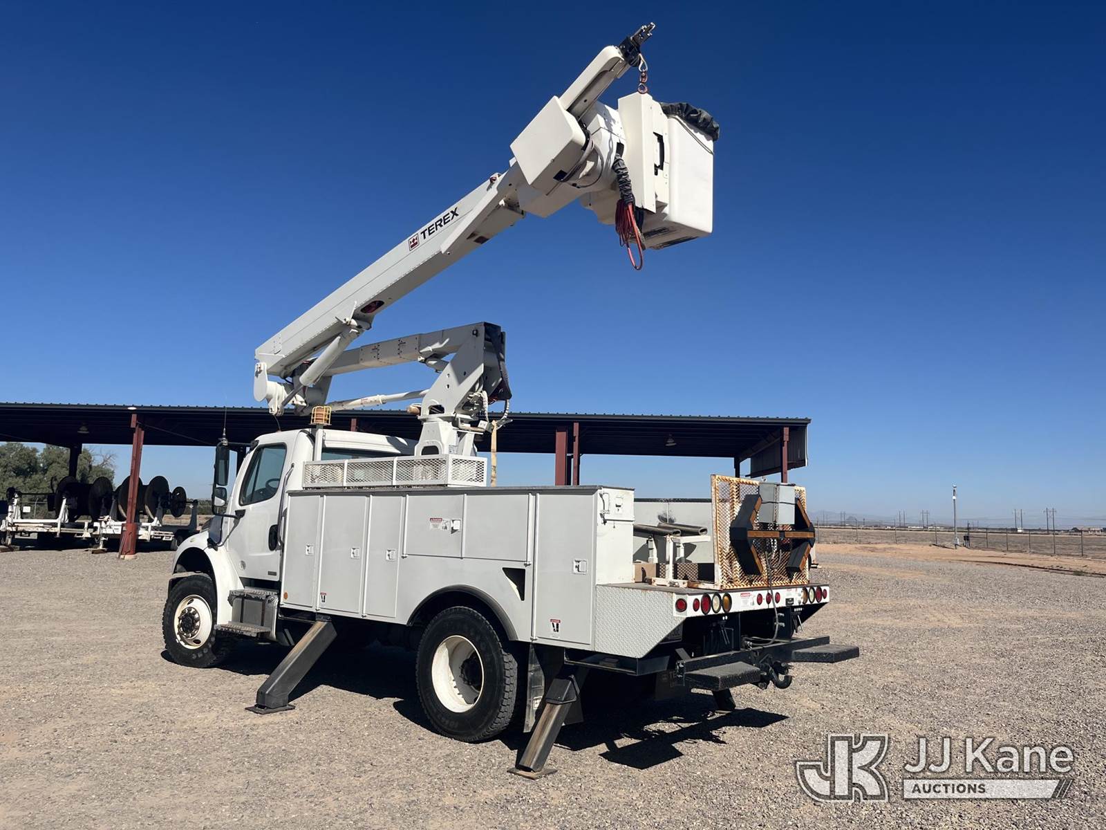 HiRanger TL45-M, 50 ft, Articulating & Telescopic Material Handling Bucket Truck s/n 2111144968, with Single-Man Bucket, 4 Hydraulic Outriggers, rear mounted on 2012 Freightliner M2 106 4x4 Utility Truck, 6.7L diesel, Auto, A/C, (49,368 miles) (Runs, Moves & Upper Operates) This is a Titled Item NOTE: This unit is being sold AS IS/WHERE IS via Timed Auction and is located in Casa Grande, AZ. Contact Robbie Osmun for details. 480-606-8465. Removal by appointment only, Buyer/Hauler must present copy of paid invoice upon arrival. Purchaser acknowledges ALL lots must be removed within 7 business days of Auction, or a storage fee may be incurred. For Removal and Pick Up information, please reference the release form sent out after purchase. (Missing manuals, See Auction Company for Manufacturers Information to obtain manuals) (Buyer is responsible for removal. Assistance by consignor or JJ Kane Auctions is not assured.)