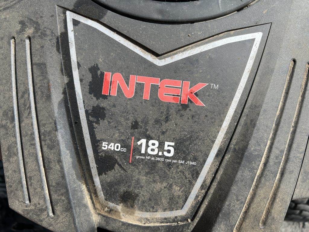Location: Spokane WA ***End-User Consignment*** S/N: 022018A001932 Engine: Intek 540cc Gas 42" Cutting deck, 6 deck positions, side chute, 18.5 hp, 15x6.00-6 front tires, 20x8.00-8 rear tires.