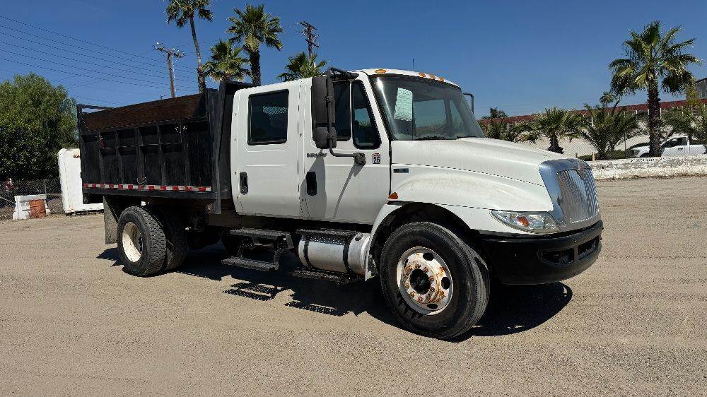 2012 INTERNATIONAL 4300M7 CREW CAB BOBTAIL DUMP TRUCK, 6.4L diesel, automatic, pto, 7-8 yard box, 17,500# rear, air trailer hook-ups, tow package. s/n:3HAJTSKL4CL590947