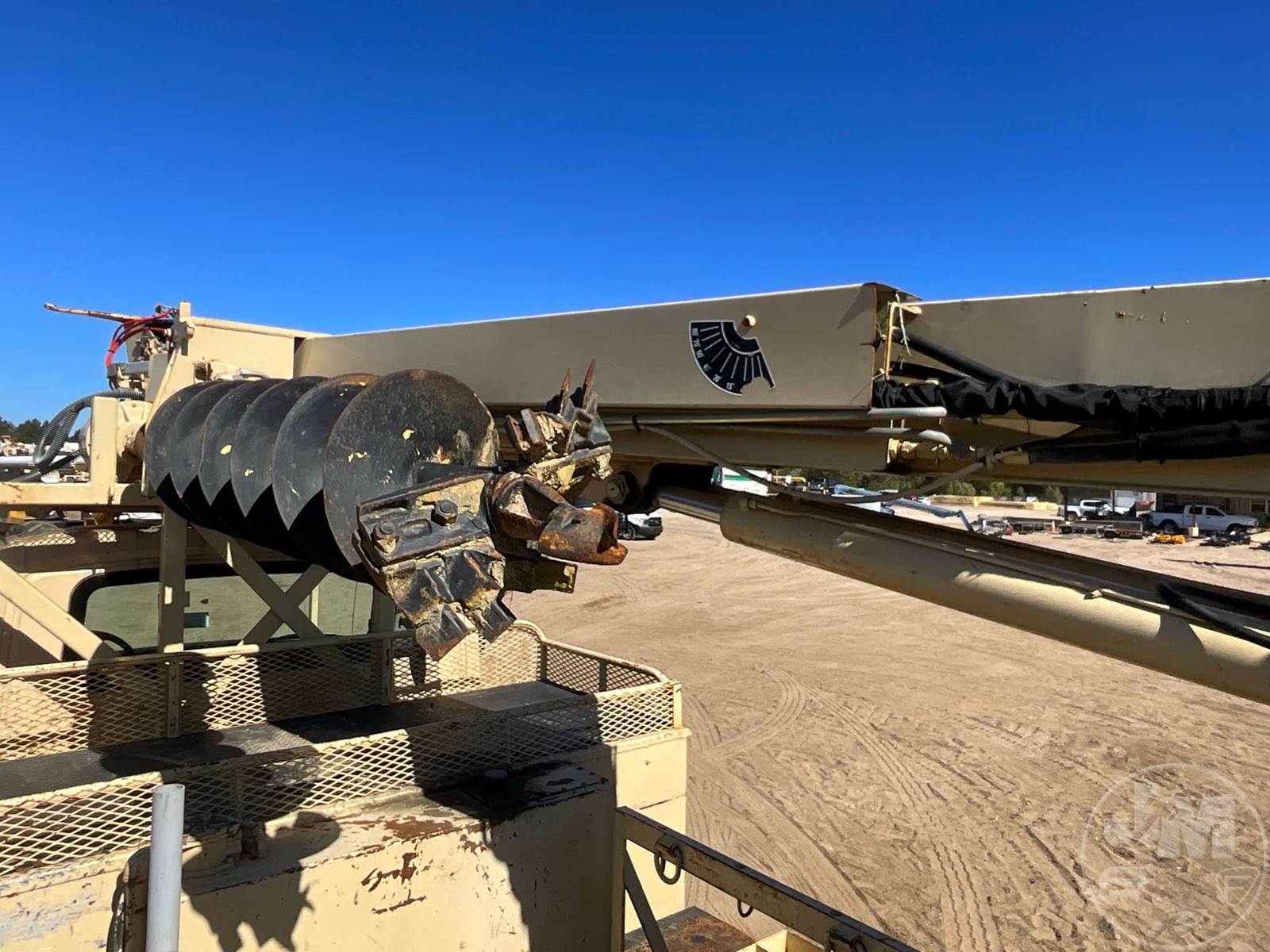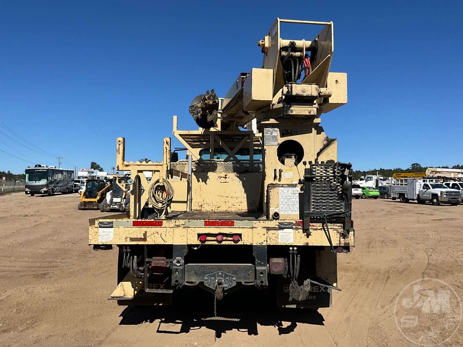 S/A DIGGER DERRICK TRUCK TEREX COMMANDER 4045, M/F, EATON FULLER, 6 SPEED, SPRING SUSPENSION, 13K FRONTS, 20K REARS, 33000 GVWR, 172 " WB, 3 SECTION BOOM, 2 SPEED DIGGER, HEEL WINCH, POLE GRABS, WINCH, 17 " AUGER, STEEL DISC WHEELS, 11R22.5 TIRES, HOUR METER READS: 9712, ODOMETER READS: 121269