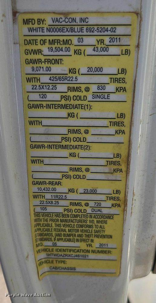 2011 Mack CHU613 vacuum truck, Miles: 461,578 on odometer, VIN: 1M1AN07Y4BM007000, Engine, Mack MP8-505C, Serial: 938306, Displacement: 12...