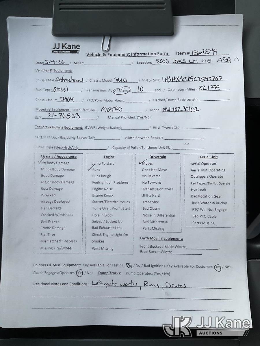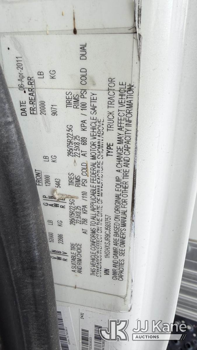 2012 International 8600 T/A Van Body Truck, 13.0L L6 DIESEL 6X4, 10-spd, A/C, with Lift Gate, (221,779 miles) (Runs & Moves) (Lift Gate Works, No Body Damage) This is a Titled Item NOTE: This unit is being sold AS IS/WHERE IS via Timed Auction and is located in Jurupa Valley, CA. Inspection & preview days for this unit are the 2 business days prior to the first day of items closing for this auction, item is located at 4510 Muth Way Jurupa Valley, CA 92509 and hours of operations are 8a-4p. For pre-sale questions, please contact please contact Office Staff @ (310) 353-7140. Dealer License Number 45696. (Buyer is responsible for removal. Assistance by consignor or JJ Kane Auctions is not assured.)