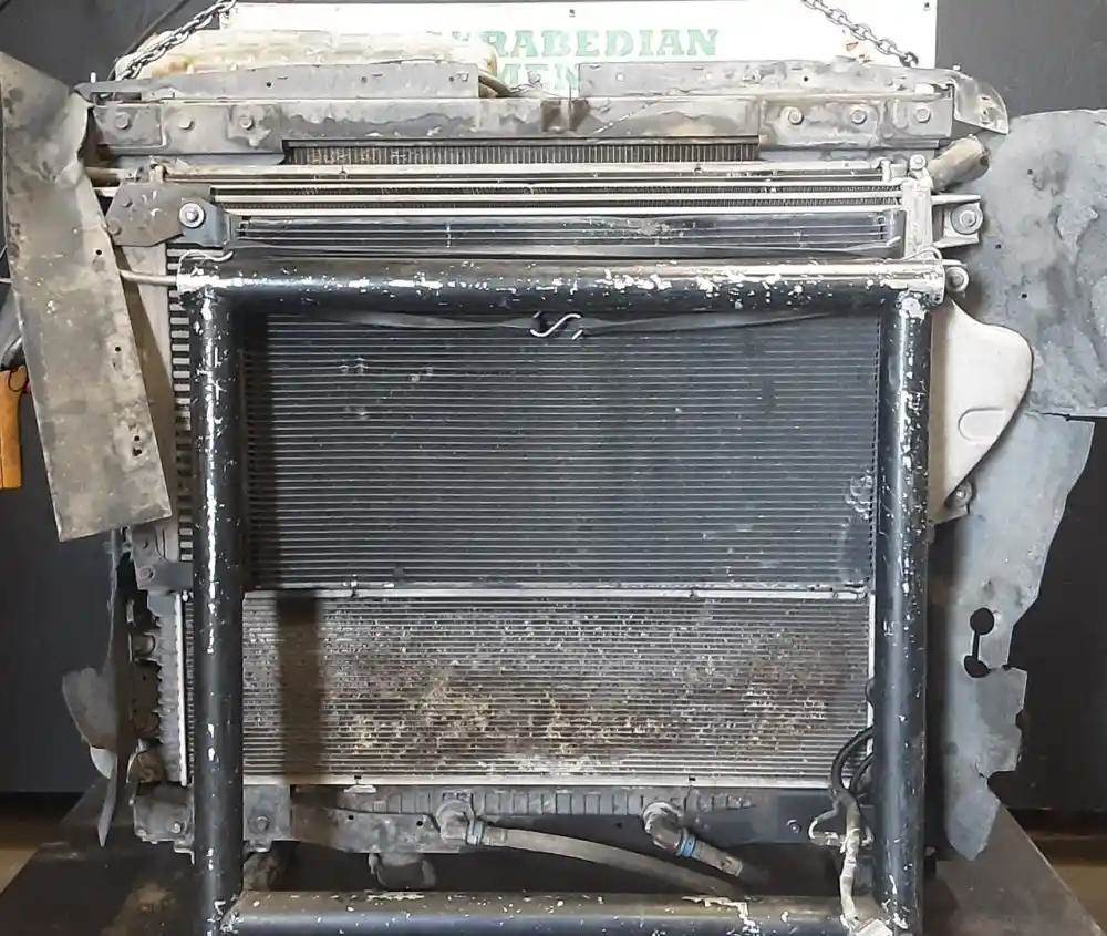 Cooling Assembly, Complete, Includes RAD, CAC, and Condenser. Condenser Damaged. Radiator P/N 2604295C91, 2604851C95, 2513233C1, 2518193C91, 1003714-D, 35 1/8"H x 40 1/8"W, 2.5" Inlet - Upper Left, 2.5" Outlet -Bottom Right, Oil Cooler - 11.5" Centers.