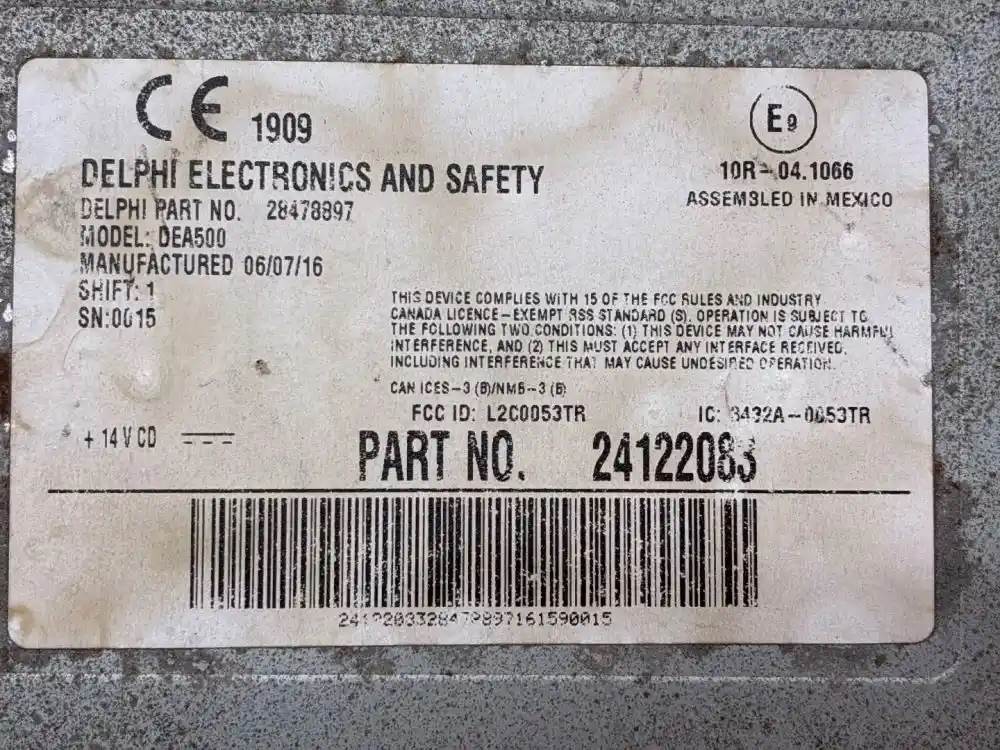 (Used) 2012 International TranStar 8600, RADIOS- Part Number: 24122083, Serial Number: 24122003328472897161590015, DELPHI ELECTRONICS AND SAFTEY, Model: DEA500, For more information about this item, give us a call. We ship Worldwide! (CRG HEAVY TRUCK PARTS) 929 W PULASKI HWY ELKTON, MD 21921