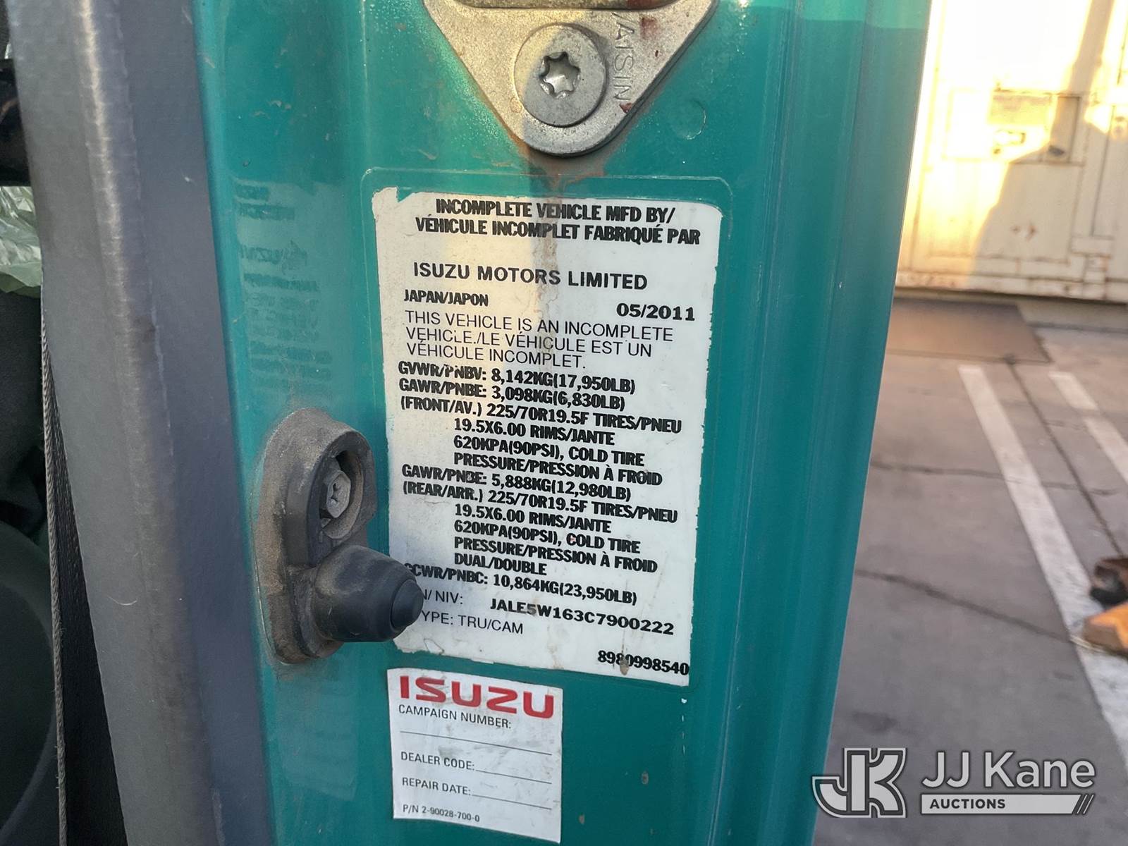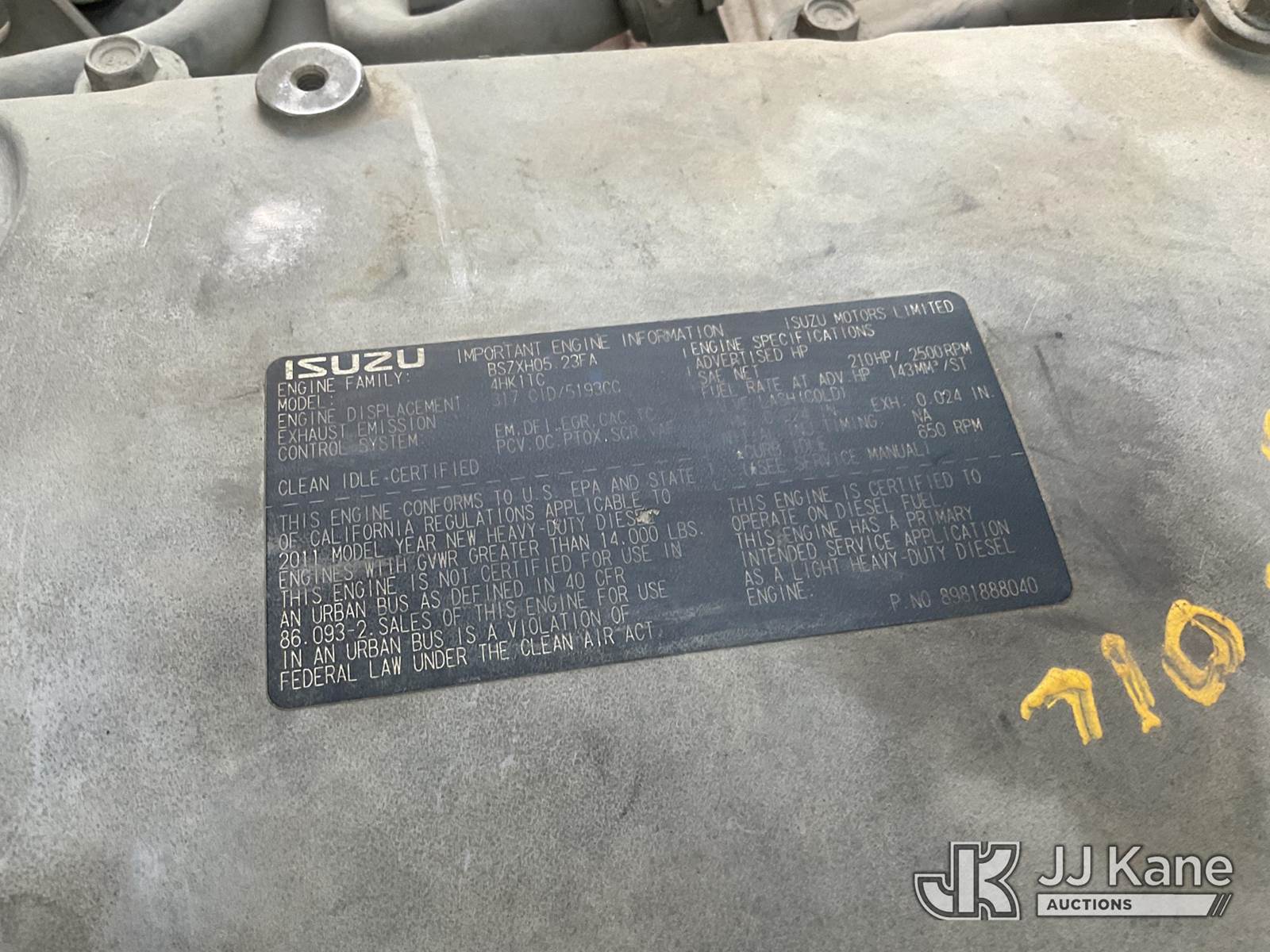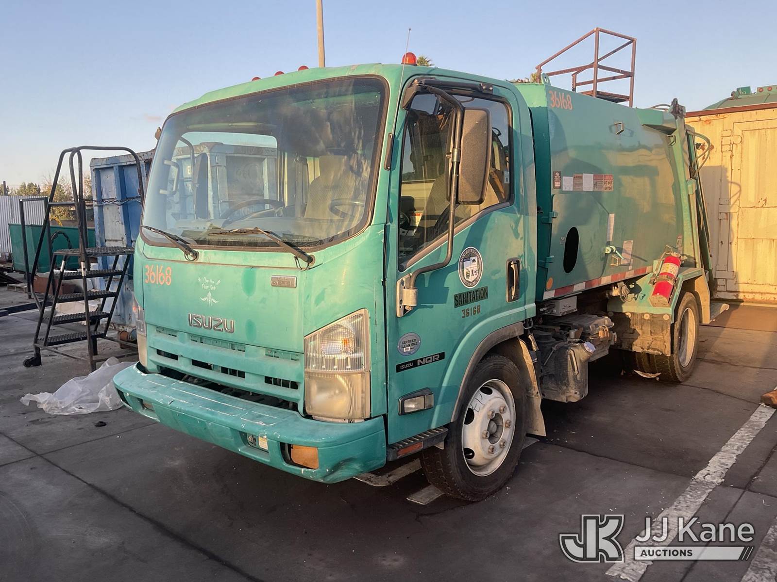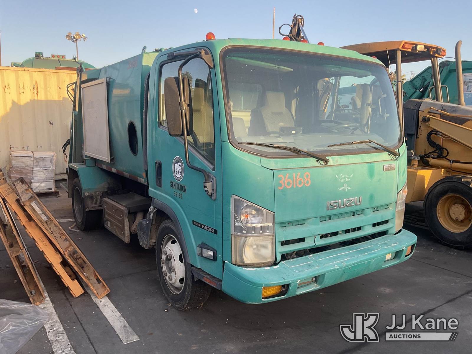 2012 Isuzu NQR Rear Load Trash Truck, 5.2L Auto, diesel, A/C, (135,627 miles) (Runs & Moves) This is a Titled Item NOTE: This unit is being sold AS IS/WHERE IS via Timed Auction and is located in Los Angeles, CA. For more information & removal arrangements please contact Gene Govoreau @ 310-613-9501. (Buyer is responsible for removal. Assistance by consignor or JJ Kane Auctioneers is not assured.)