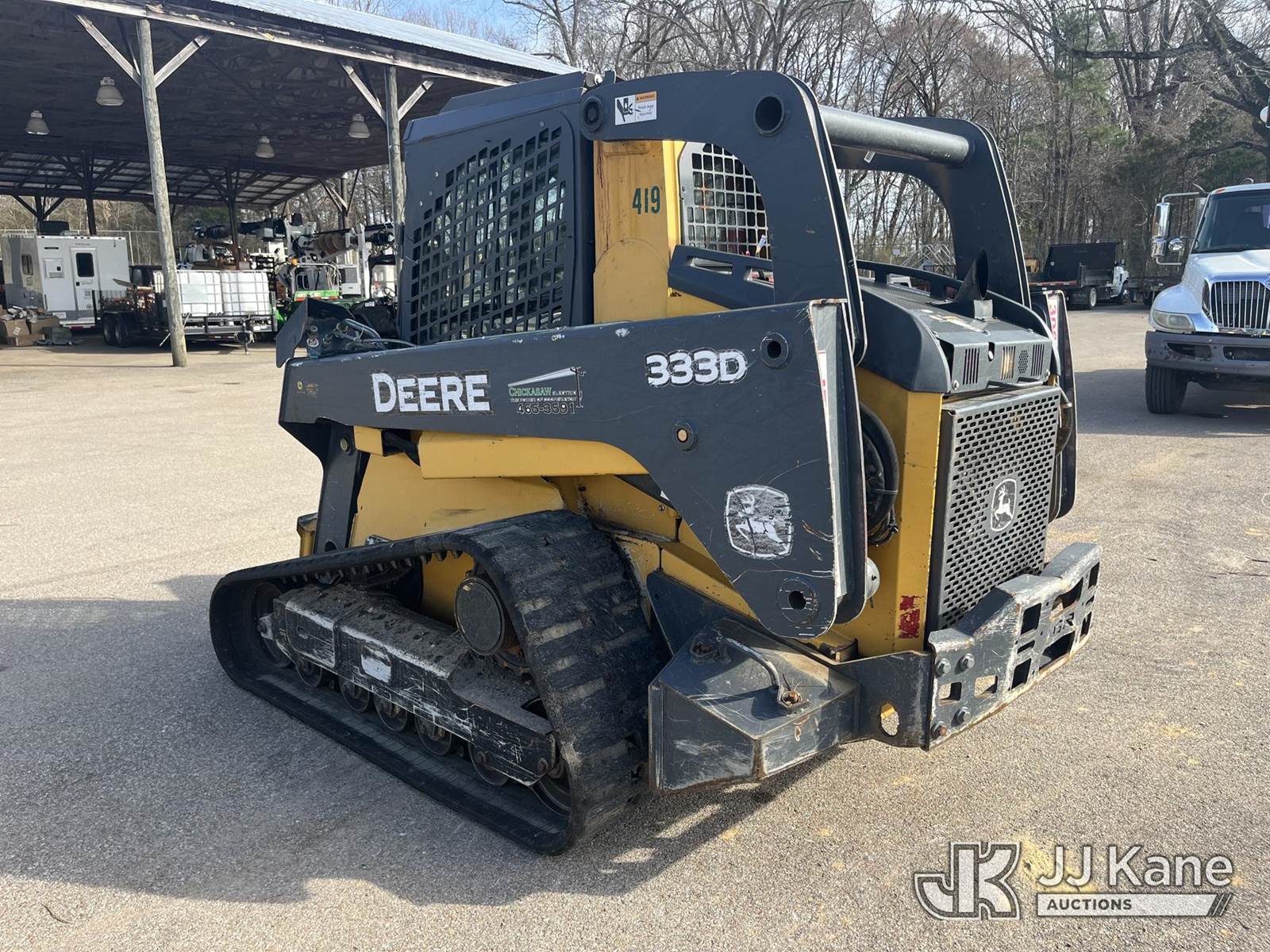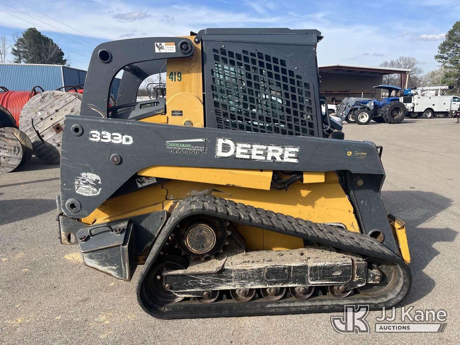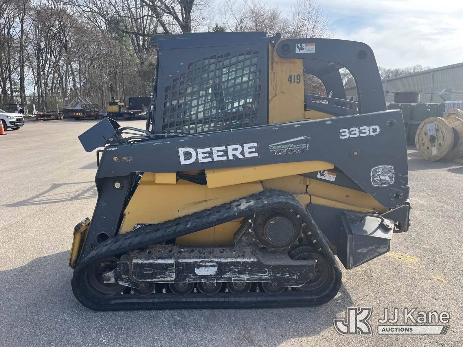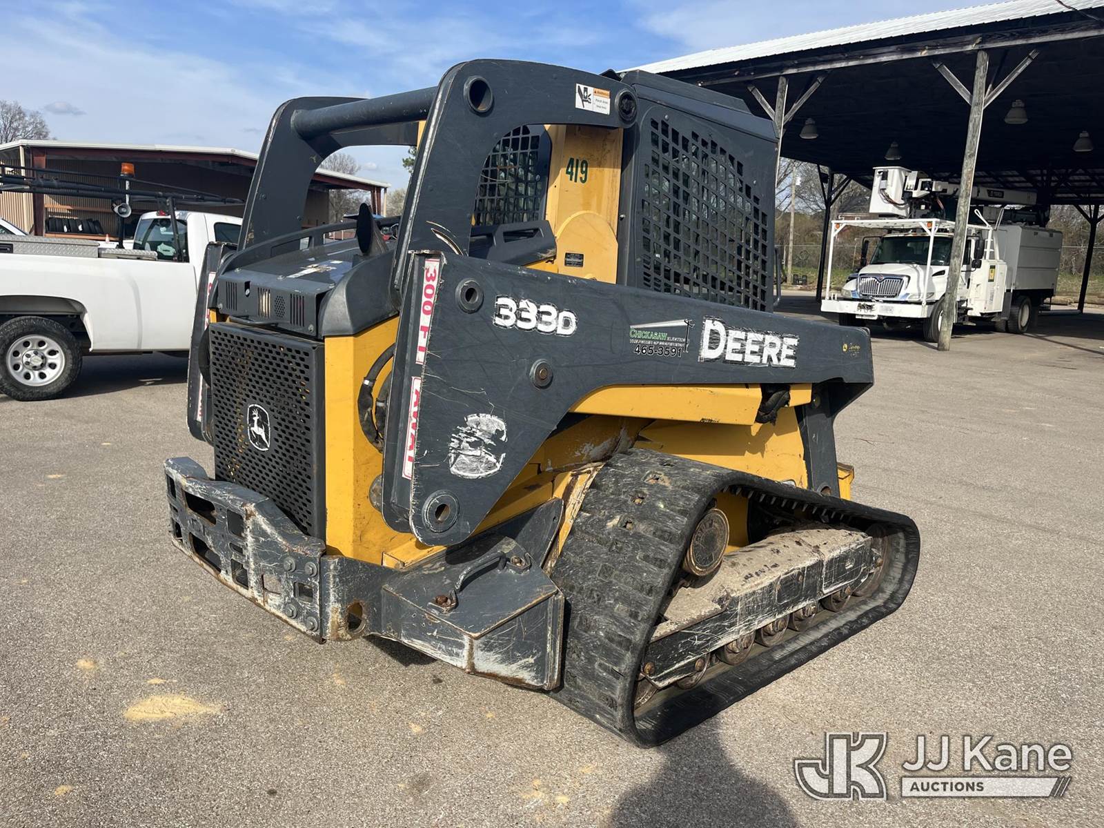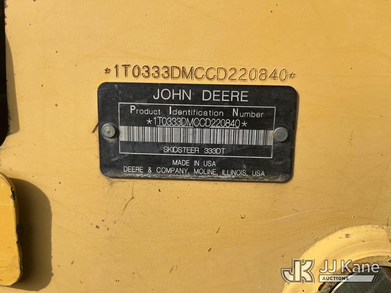 2012 John Deere 333DT Crawler Skid Steer Loader, s/n 1T0333DMCCD220840, 4.5L diesel, Hydrostatic, with Electronic Quick Coupler Included With Machine; High-Flow Hydraulic Connection & EROPS w/A/C, (Electric Cooperative Owned) (Runs, Moves, Operates) (Reads 3,126 hours) NOTE: This unit is being sold AS IS/WHERE IS via Timed Auction and is located in Somerville, TN. For more information & removal arrangements please contact Dalton Childers @ 629-395-3117. Removal by appointment only, Buyer/Hauler must present copy of paid invoice upon arrival. Purchaser acknowledges ALL lots must be removed within 7 business days of Auction, or a storage fee may be incurred. For Removal and Pick Up information, please reference the release form sent out after purchase. (Buyer is responsible for removal. Assistance by consignor or JJ Kane Auctions is not assured.)