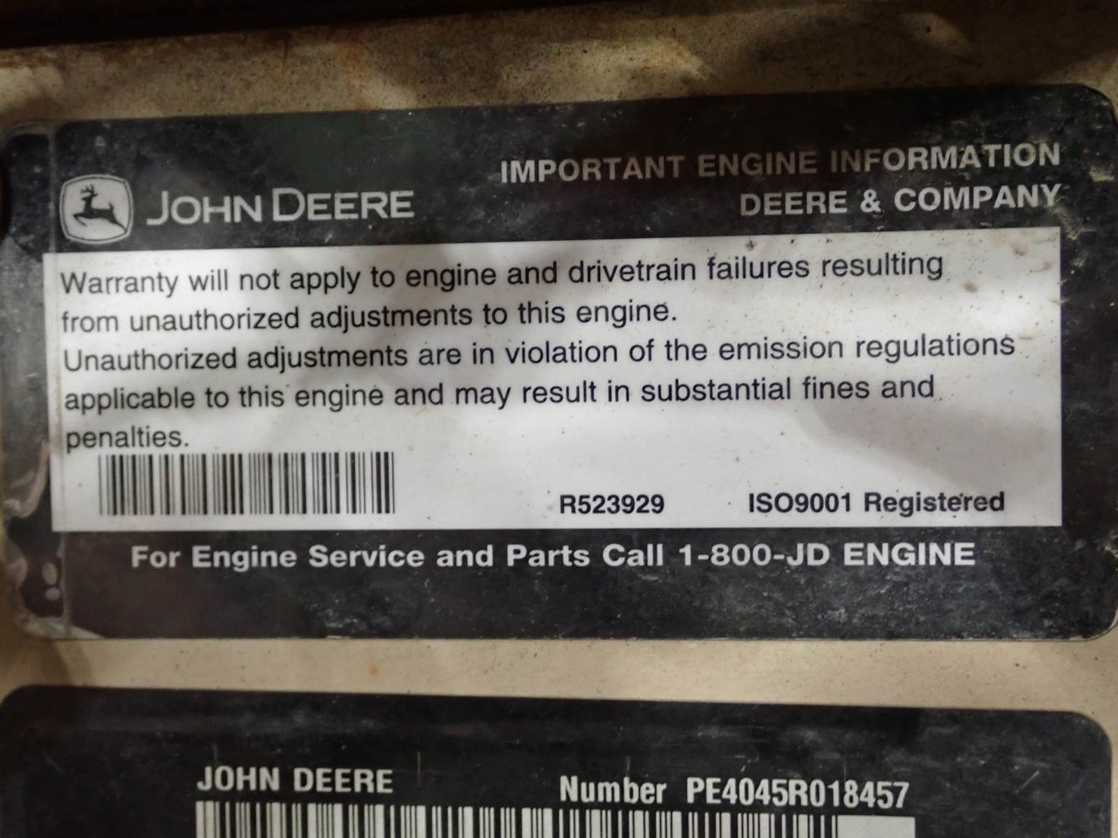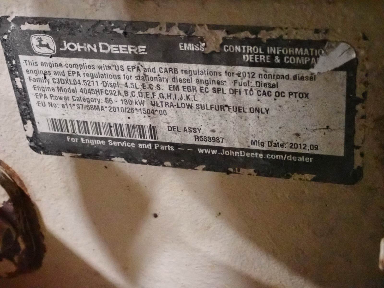2012 John Deere 4045HFC92 Turbo Diesel Engine IT4