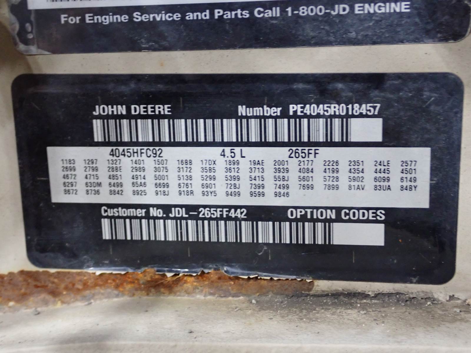 John Deere 4045HFG92 turbo diesel engine, Tier 4 interim emissions, turbocharged, intercooled, electronic common rail fuel injection, full option codes in pictures, block code 3612. Good running engine, comes complete as pictured w/ aftertreatment & other accessories. Removed from a sweeper unit, test ran clean w/ no smoke or blowby observed during cold test run. Held good oil pressure during cold test run. LONG BLOCK # IS RM100172 and will interchange with the following applications: 210K Loaders (4045HT073) 310K, 310SK and 410K backhoe loaders (4045HT063, 073) 6100, 6110RC tractors 4045HFG92 industrial engines