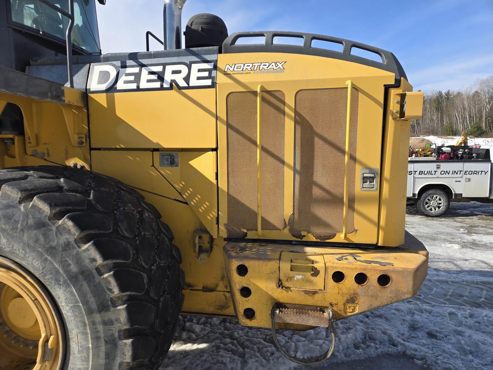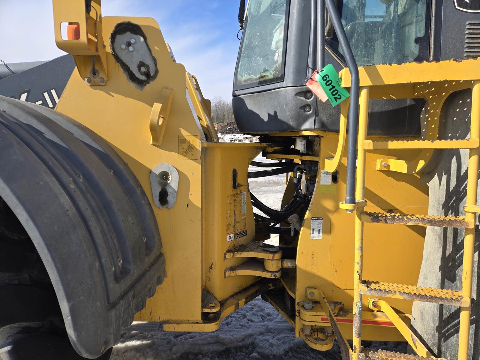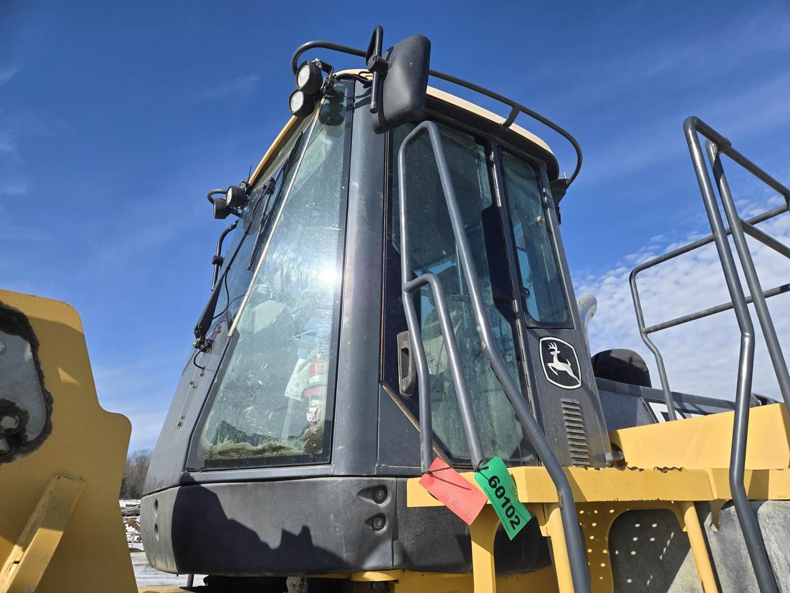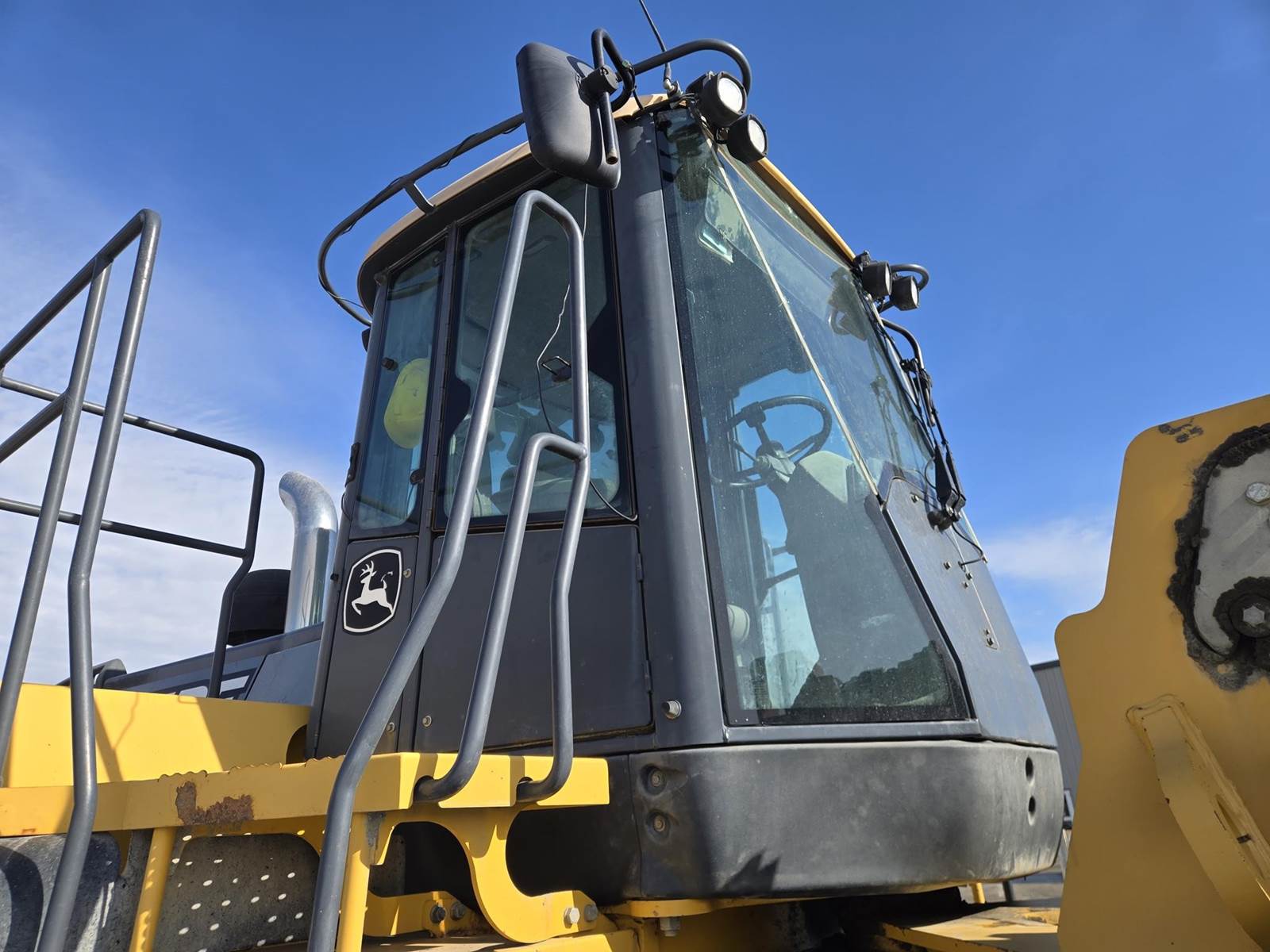 John Deere Turbo Diesel Engine, Automatic Transmission, Approx 132" Bucket Width, Differential Lock, EROPS, Joystick Steer, Suspension Seat, Heat, A/C, Radio, Digital Display, 875/65r29