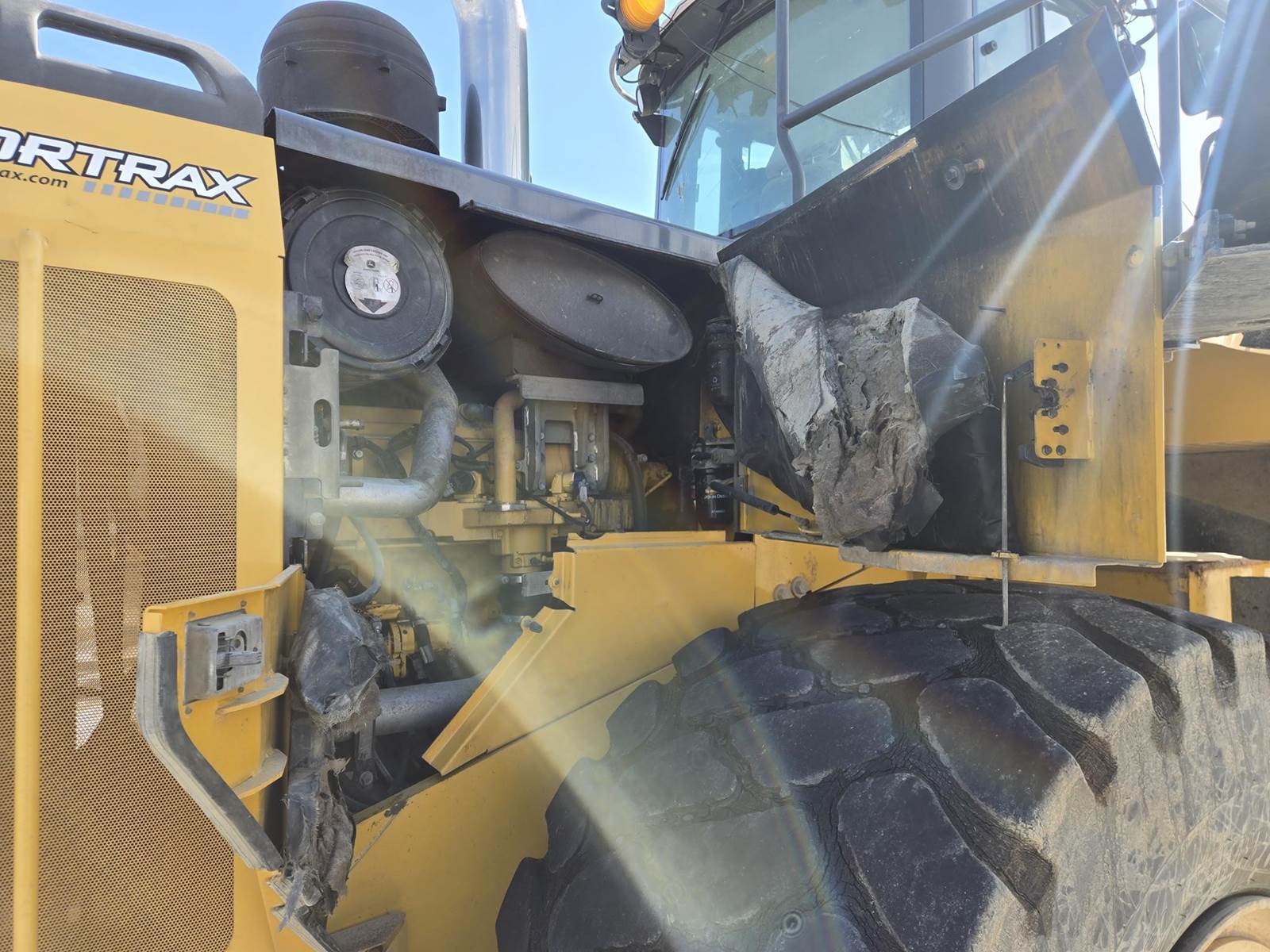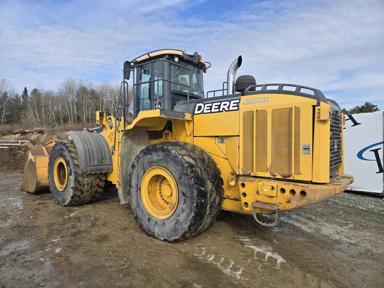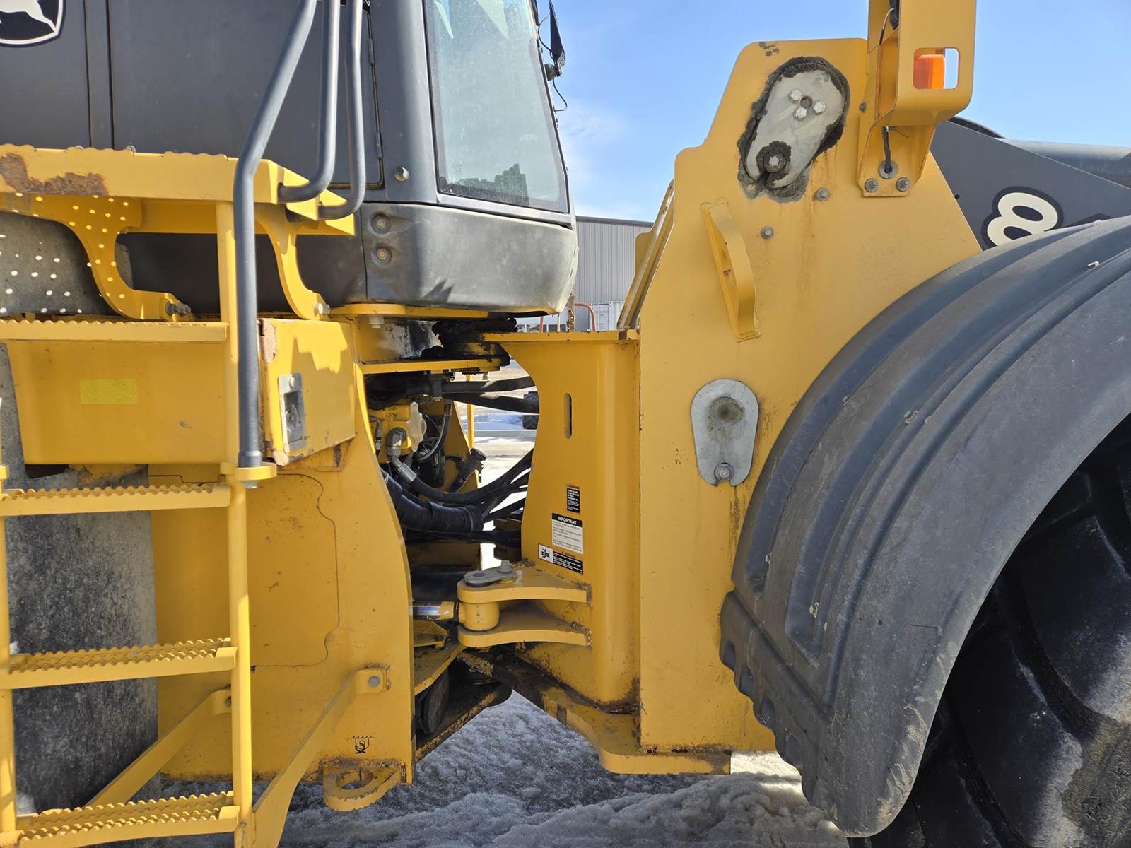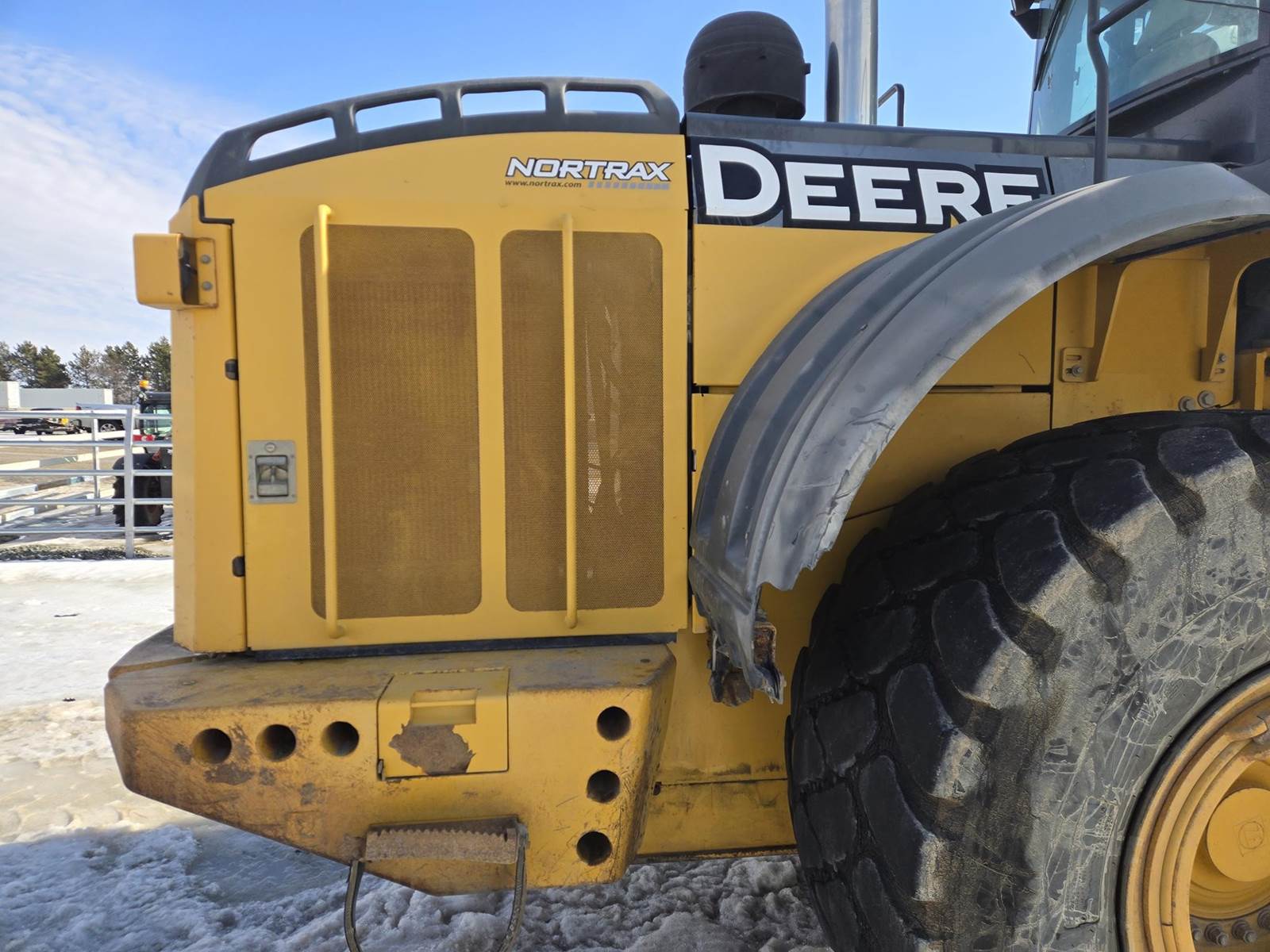 John Deere Turbo Diesel Engine, Automatic Transmission, Approx 132" Bucket Width, Differential Lock, EROPS, Joystick Steer, Suspension Seat, Heat, A/C, Radio, Digital Display, 875/65r29