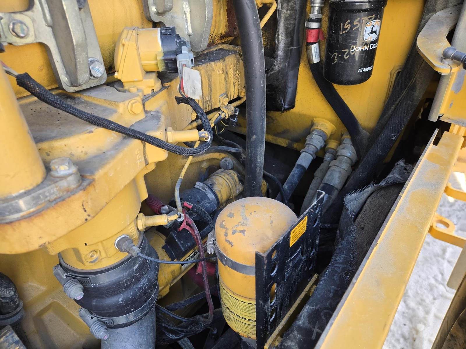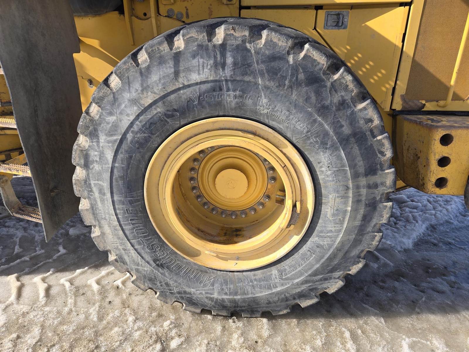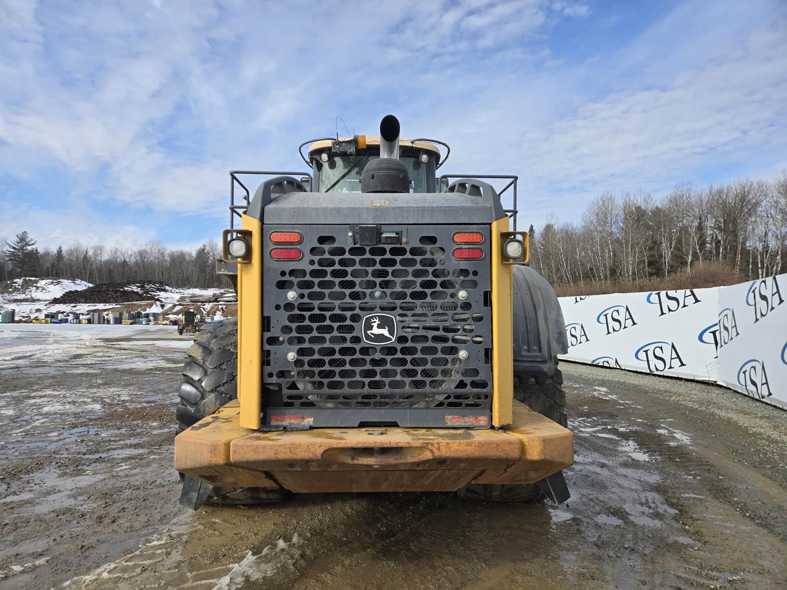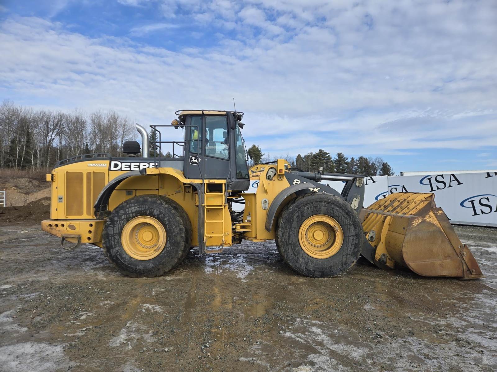 John Deere Turbo Diesel Engine, Automatic Transmission, Approx 132" Bucket Width, Differential Lock, EROPS, Joystick Steer, Suspension Seat, Heat, A/C, Radio, Digital Display, 875/65r29