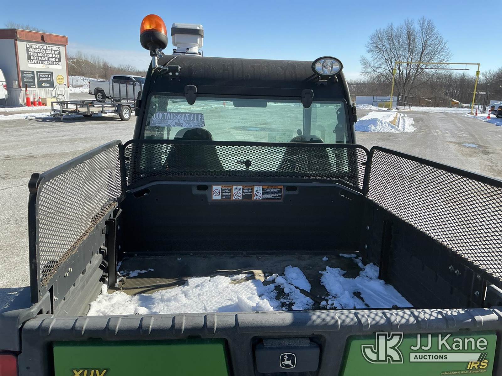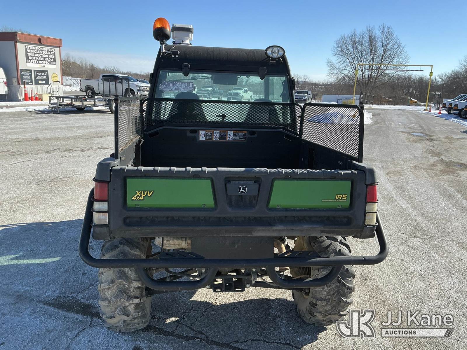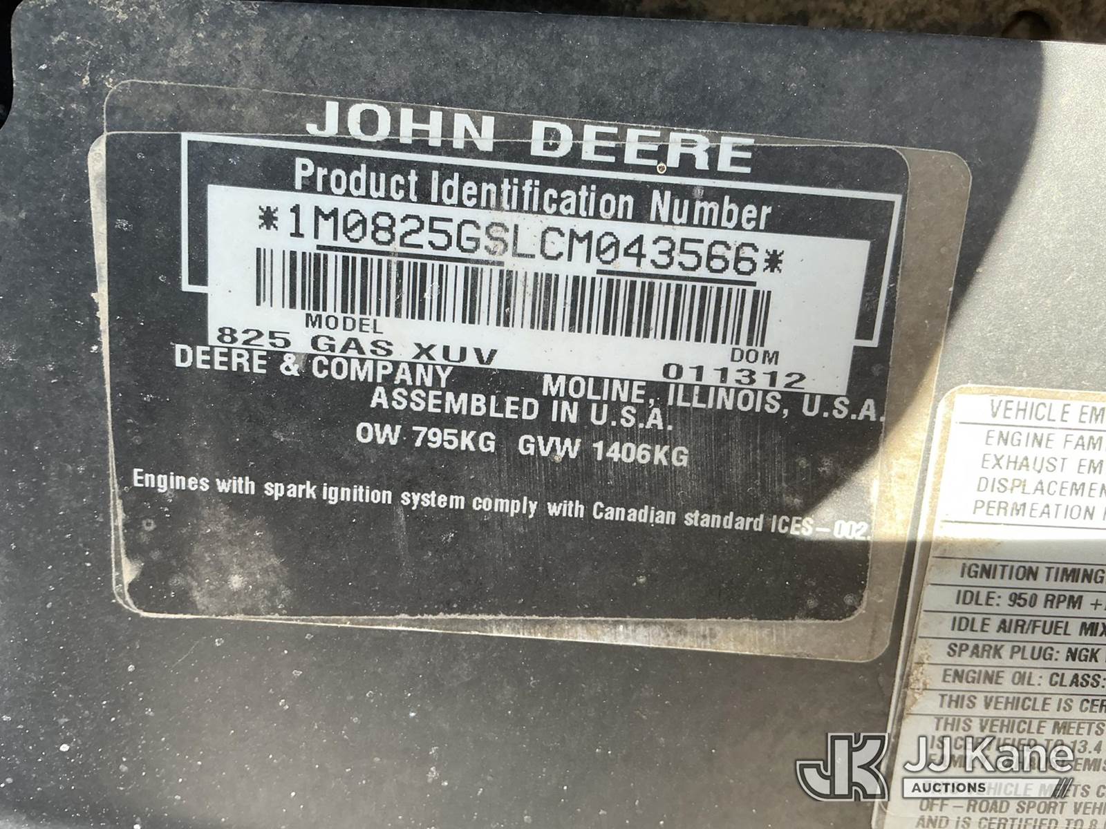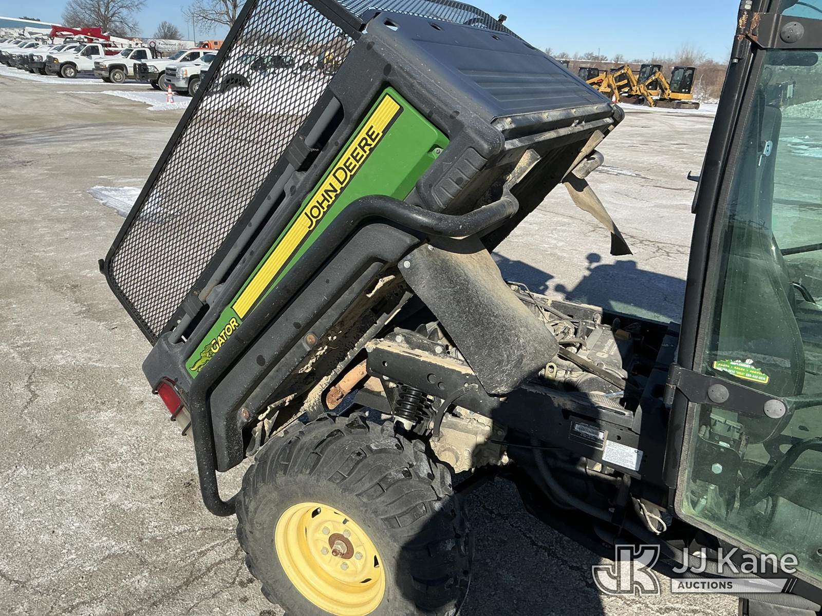 2012 John Deere Gator XUV 825i 4x4 Utility Vehicle, s/n 1M0825GSLCM043566, John Deere gas, with EROPS, Front & Rear Bumper, Electronic Bed Lift, Front & Rear Flip Out Glass, Heater, (1,108 miles) (No Title) (Not Running, Conditions Unknown) ( No Battery,Cranks Over With Jump Does Not Start) ( Seller States Wiring Issue, Front Glass Not Attached AtTop, Electric Bed Lift Goes Up, Won’t Go Back Down) (Reads 141 hours) NOTE: This unit is being sold AS IS/WHERE IS via Timed Auction and is located in Kansas City, MO. Inspection & preview days for this unit are the 2 business days prior to the first day of items closing for this auction, item is located at 962 Tel Aviv Ave Kansas City, MO 64153 and hours of operations are 8a-4p. For pre-sale questions, please contact Ricky McPherson @ (816) 610-2250. (Buyer is responsible for removal. Assistance by consignor or JJ Kane Auctions is not assured.)