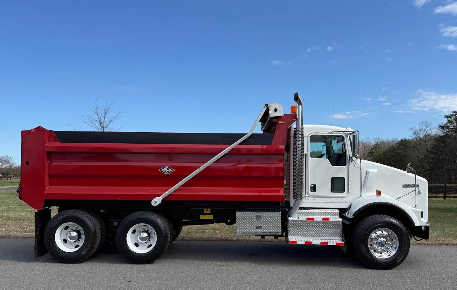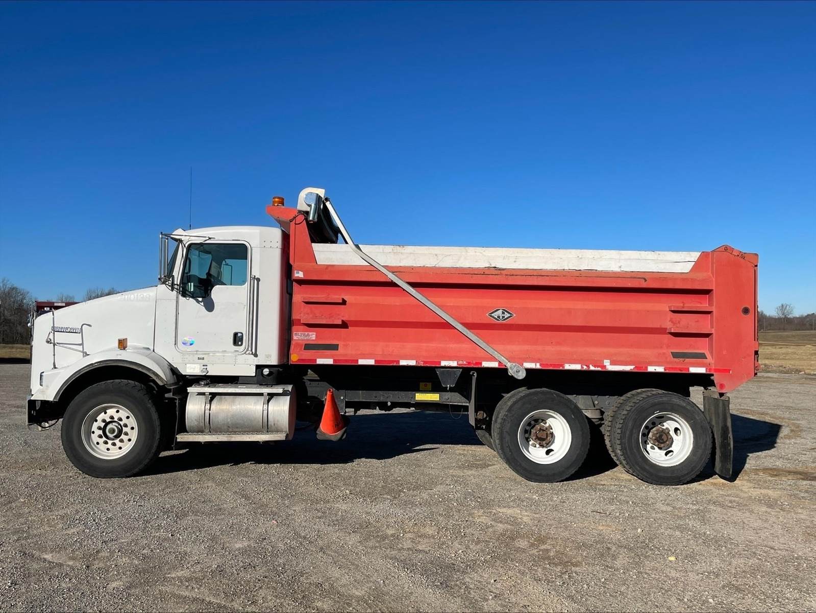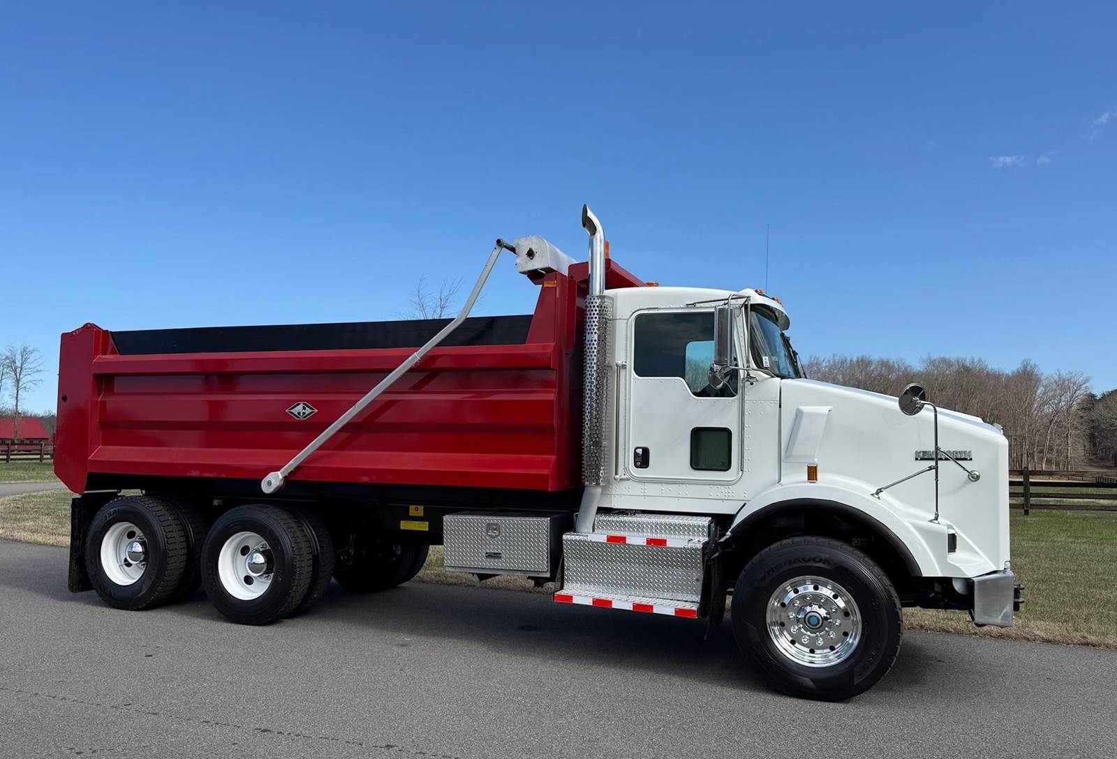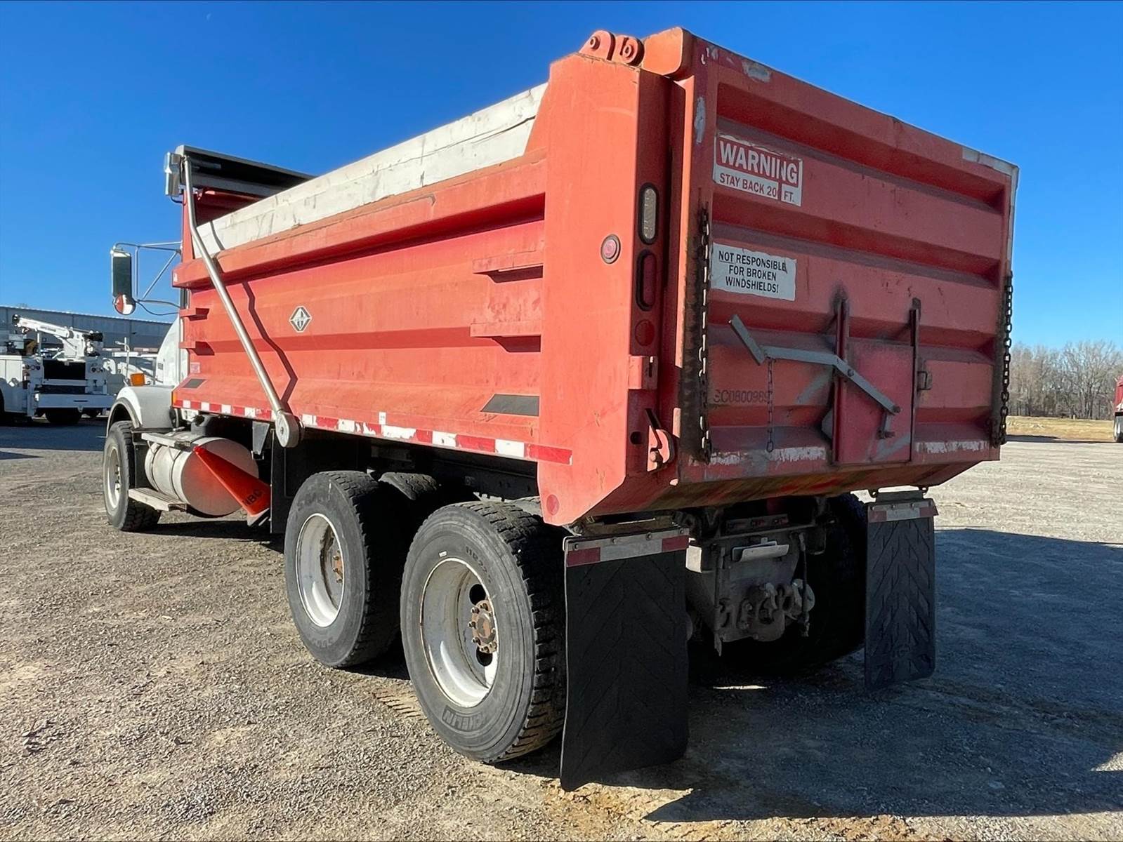 Tandem, 17' J-Craft Steel Dump w/42" Sides, MX13 Paccar 455 HP, 8LL, 3.90 Ratio, 3 Stage Engine Brake, Thick Frame, Chalmers, 20K FA, 40K RA, 214" WB, 20' Bridge, Electric Tarp, Air Tailgate, Chute, Full Locking Rears, Pintle Hitch w/Air, 7 Pole Prong and Spade, Dual P/S Boxes, P/S, A/C, AM/FM, Heated Mirrors, Cruise, Power Locks and Passenger Window, Dual High Back Seats, 90 Gallon Aluminum Fuel Tank, 385/65R22.5 Steer Tires on Aluminum Wheels, 11R22.5 Drive Tires on Steel Wheels, Chrome Bumper