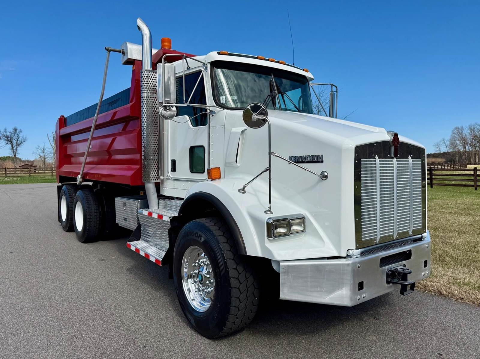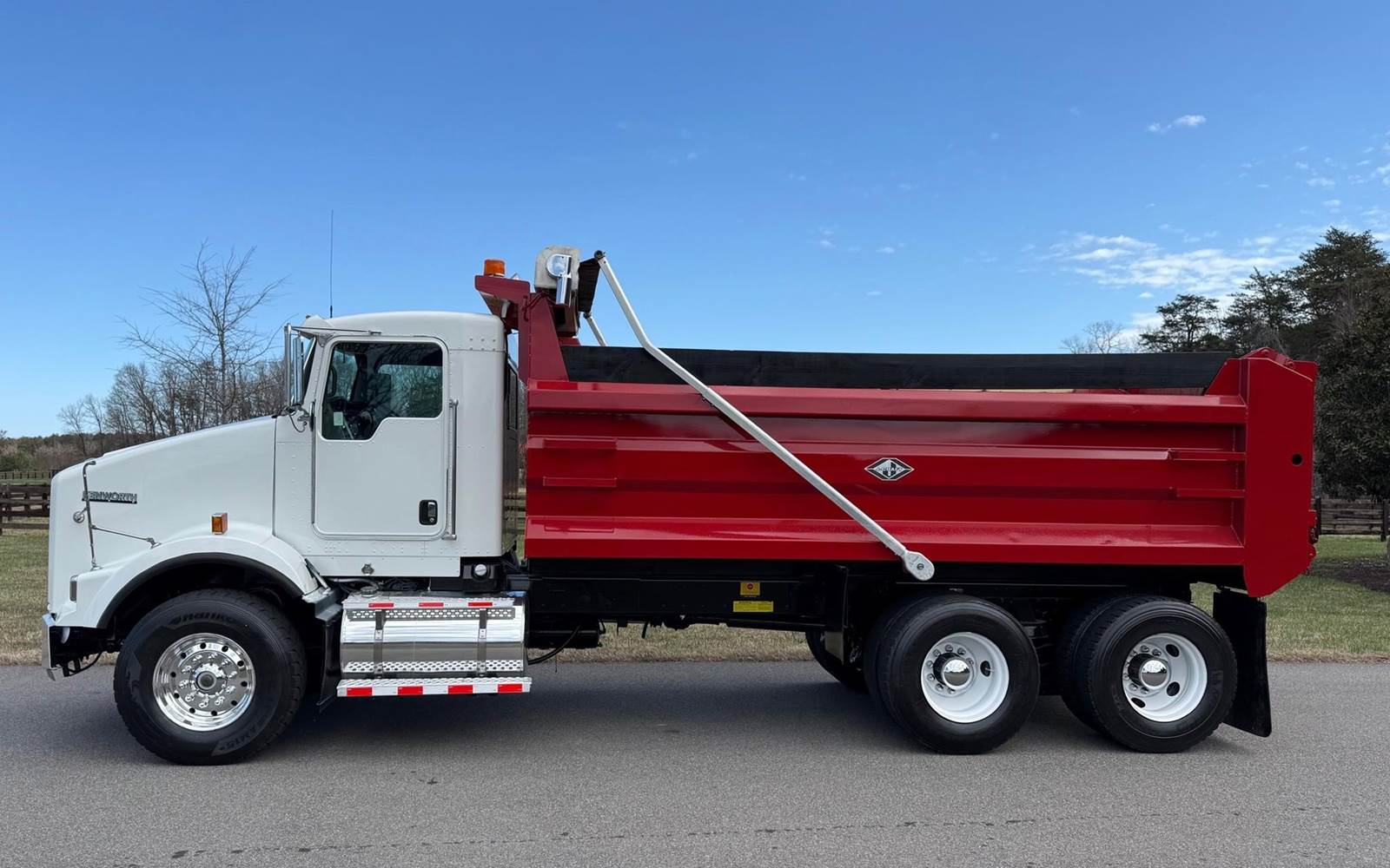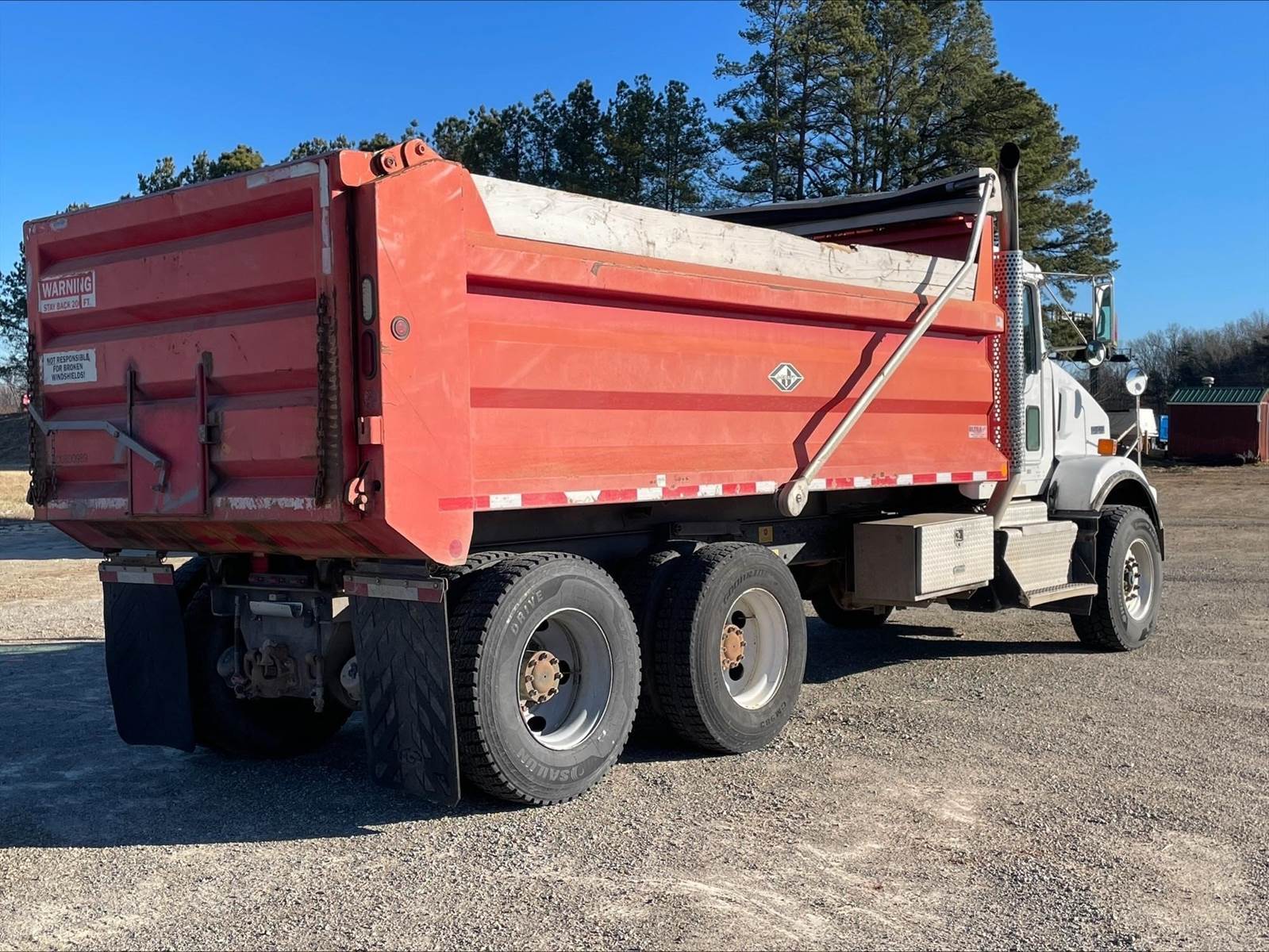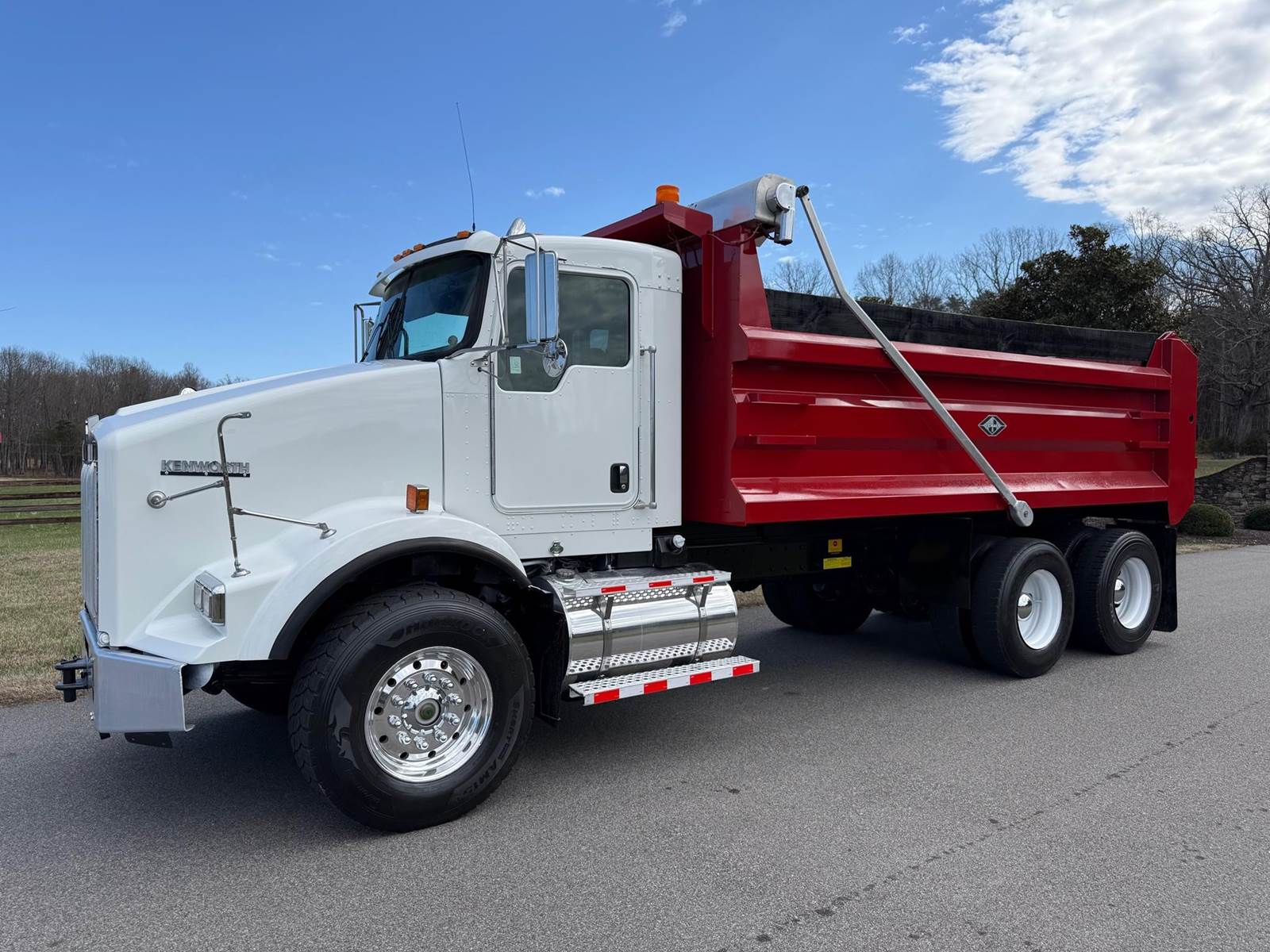 Tandem, 17' J-Craft Steel Dump w/42" Sides, MX13 Paccar 455 HP, 8LL, 3.90 Ratio, 3 Stage Engine Brake, Thick Frame, Chalmers, 20K FA, 40K RA, 214" WB, 20' Bridge, Electric Tarp, Air Tailgate, Chute, Full Locking Rears, Pintle Hitch w/Air, 7 Pole Prong and Spade, Dual P/S Boxes, P/S, A/C, AM/FM, Heated Mirrors, Cruise, Power Locks and Passenger Window, Dual High Back Seats, 90 Gallon Aluminum Fuel Tank, 385/65R22.5 Steer Tires on Aluminum Wheels, 11R22.5 Drive Tires on Steel Wheels, Chrome Bumper