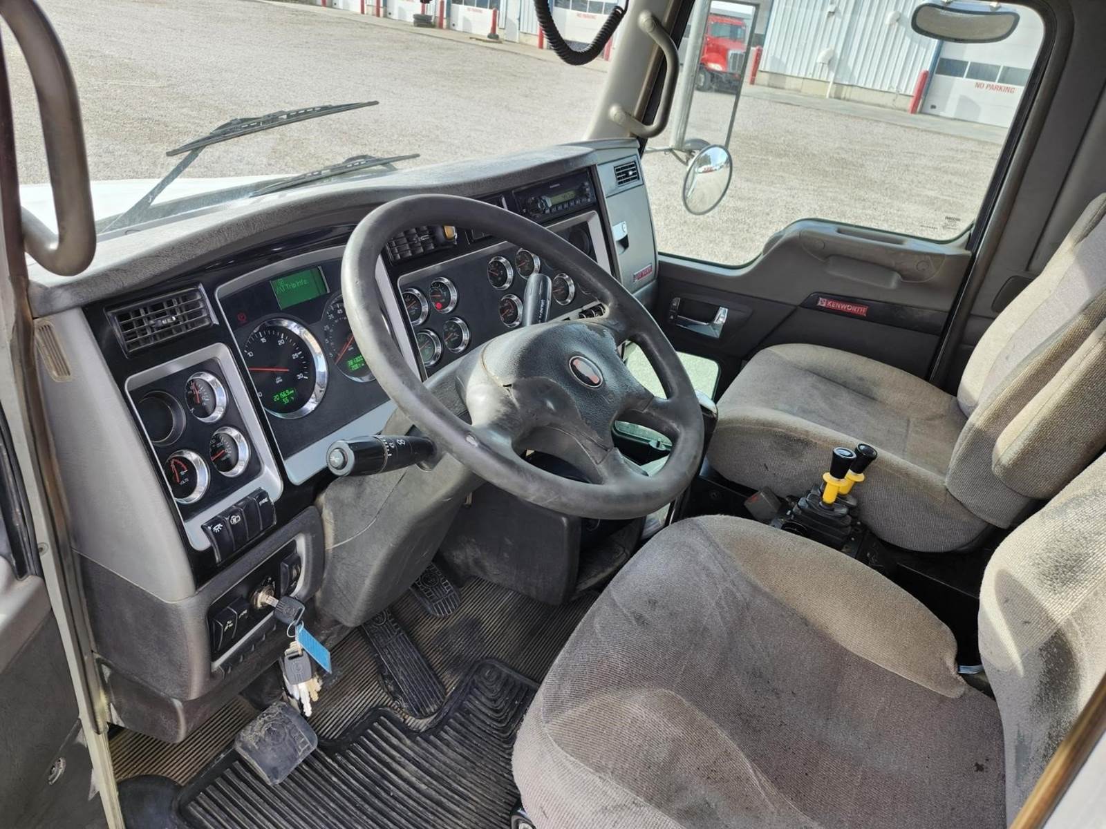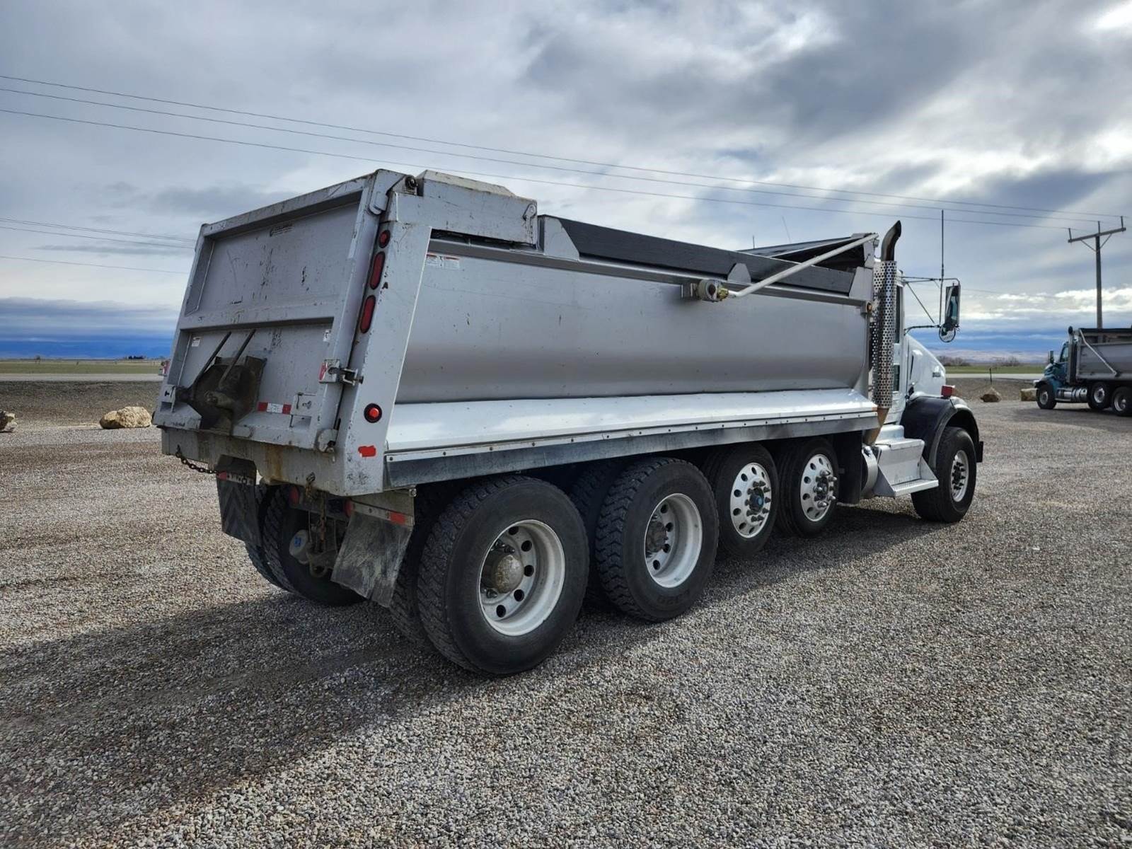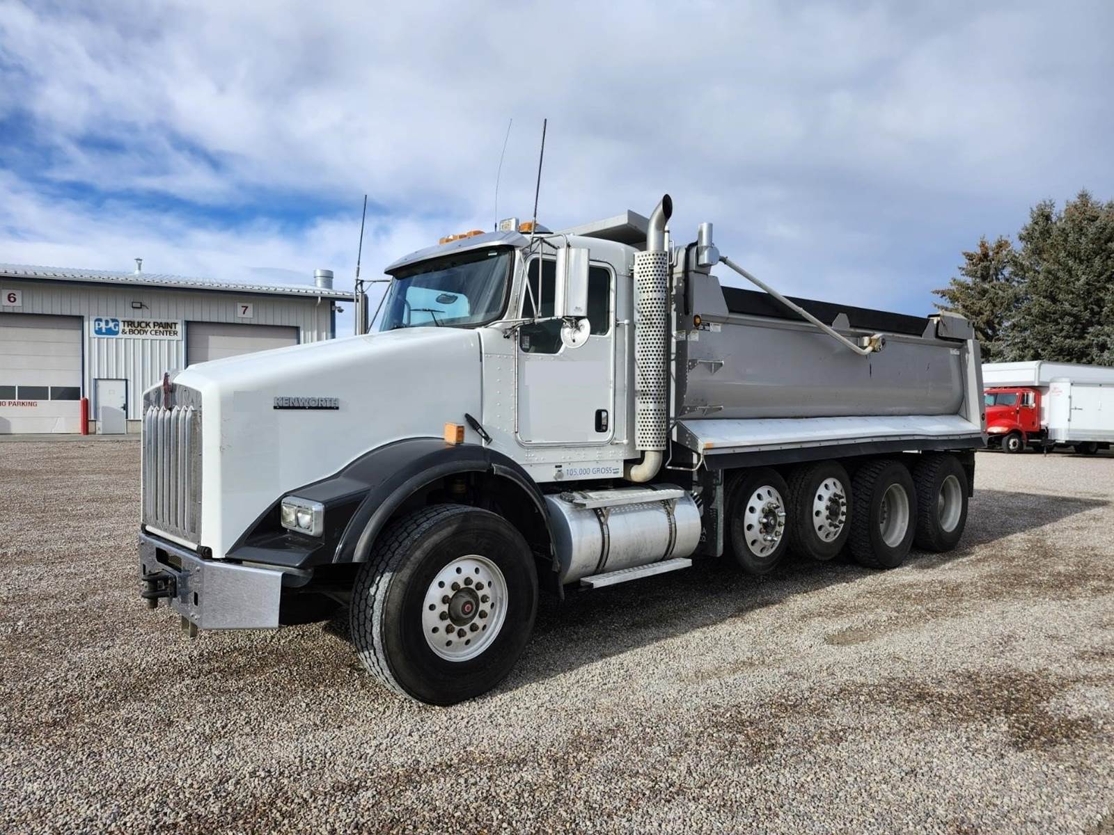 Columbia 18' semi-elliptical bed, 18 yard, Hi-lift gate, Electric tarp, Air gate release, Pintle hitch with rear hydraulics for pup, 3 way lockers, Double frame, 2 steerable lift axles- 13,200 each, 20K FA- 46K RA, Paccar MX13 485HP, Jake brake, 18 speed transmission, 4.10 ratio, Chalmers suspension, 160" Cab/trunnion, A/C, Cruise, Tilt wheel, Power passenger window, Power passenger mirror, Heated mirrors, Engine block heater, Clean truck!! 2012 Kenworth T800