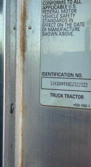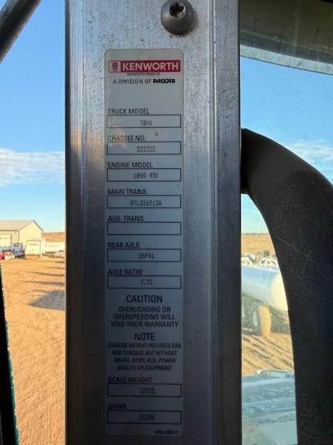NON RUNNER, ENGINE BAD. 2012 Kenworth T800, ISX15 450 hp, RTLO16913A transmission, DSP41 rears with 3.55 ratio, A/S 5th wheel, 13,200# steer axle, 38,000# drives, 11R24.5 tires on aluminum wheels, 75 gallon and 120 gallon tanks, chrome bumper,