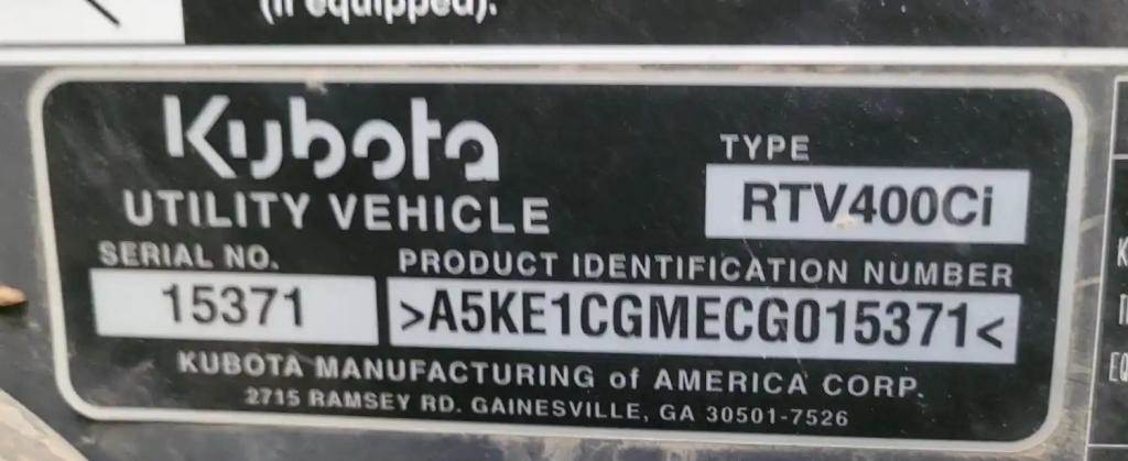 2012 Kubota RTV400CI Salvage Truck