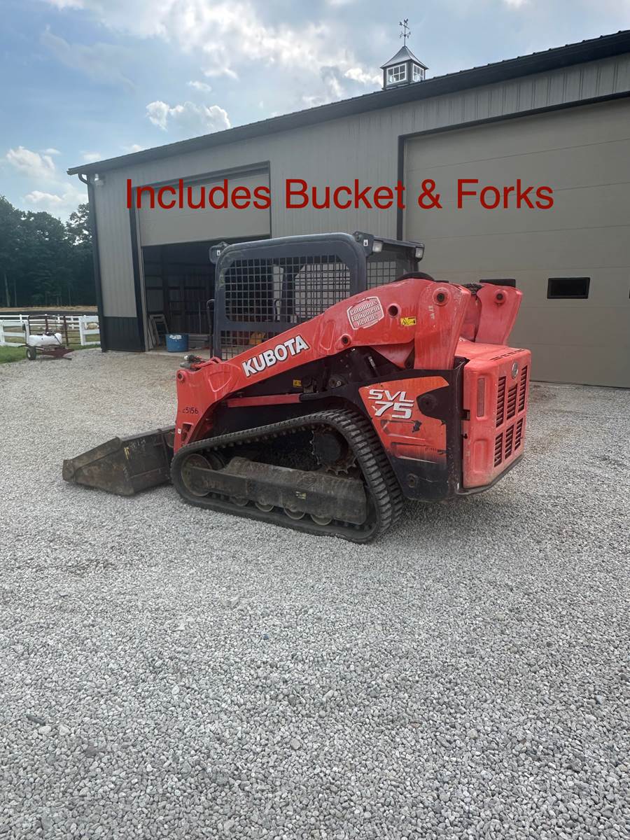 2012 Kubota SVL75, 74.3 H.P., OptWt 9039lbs, 4406 hours, engine model Kubota V3307-CR-TE4,diesel, 6' bucket, includes forks, newer tracks, runs as it should