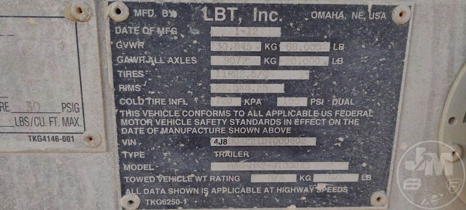 2012 LBT HAB-HA2-J1000X3 Tank Trailer