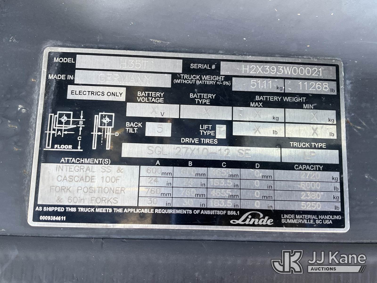 2012 Linde H35T Solid Tired Forklift, s/n H2X393W00021, LPG, Shuttle, with 6,000 lb. lift capacity, 50 in. forks, 3 stage 183 in. mast & ROPS, (Runs, Moves & Operates) (LPG Tank Not Included) (Reads 5,802 hours) NOTE: This unit is being sold AS IS/WHERE IS via Timed Auction and is located in Verona, KY. Inspection & preview days for this unit are the 2 business days prior to the first day of items closing for this auction, item is located at 2841 Verona-Mudlick Rd Ste B Verona, KY 41092 and hours of operations are 8a-4p. For pre-sale questions, please contact Office Staff @ (502) 612-5080. Auctioneer Michael Whitebread / License # 256617. (Buyer is responsible for removal. Assistance by consignor or JJ Kane Auctions is not assured.)