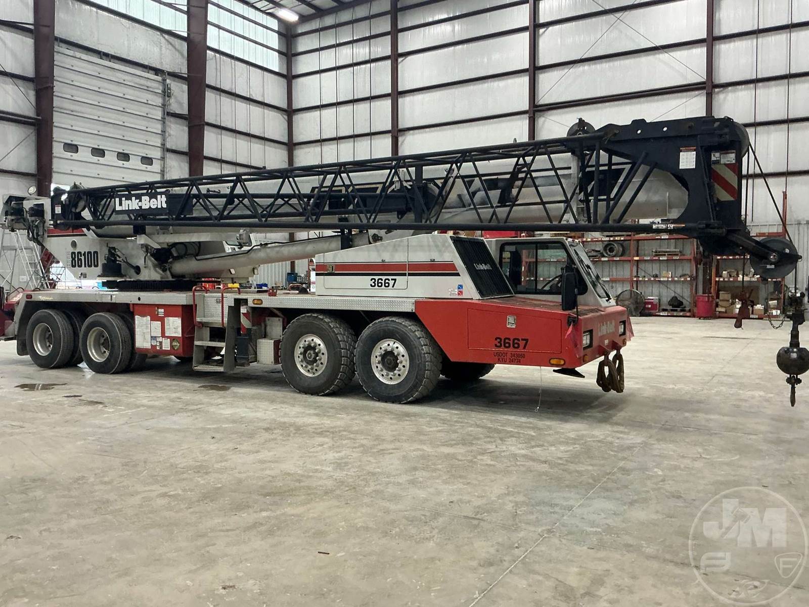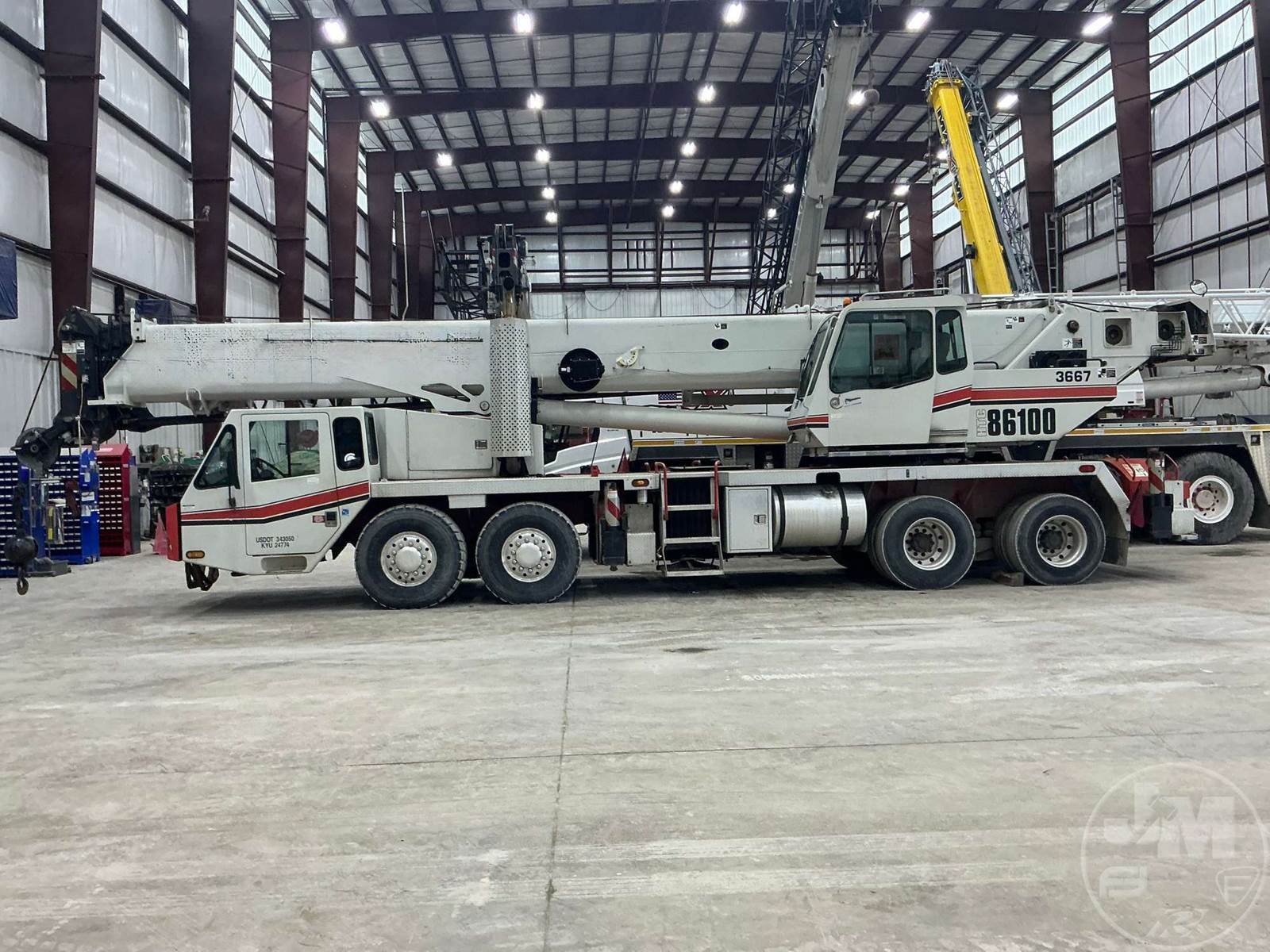 HYDRAULIC CRANE, CAPACITY 100 TON, HYDRAULIC TRUCK CRANE EQUIPPED WITH A 5 SECTION 38-140' FULL POWER BOOM,35-58' OFFSETTABLE BIFOLD SWING AWAY JIB, K, BALL , LMI8X4X4 DRIVE/ STEERCAT C13 ENGINE, ODOMETER 45739.1, ZF TRANS, AUX WINCH,ROOSTER SHEAVE, ANTI TWO BLOCK, BALL, HOUR METER READS: 11816