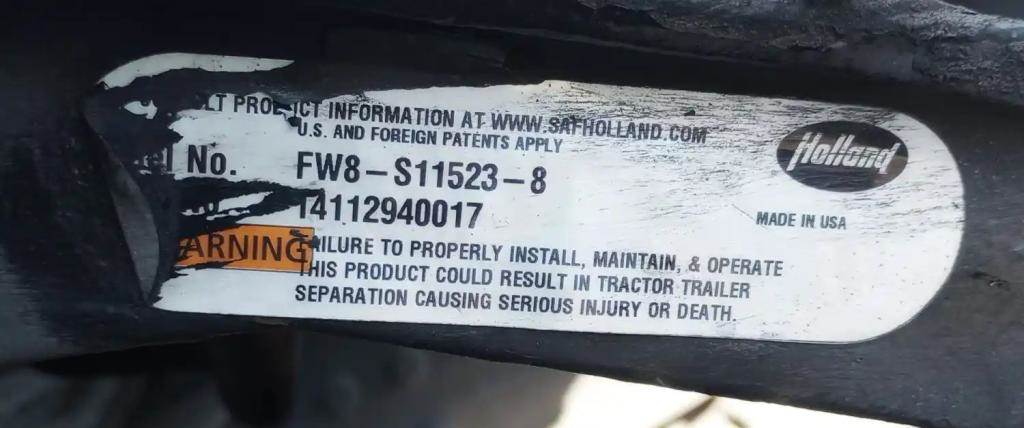 Holland FW8 Stationary Fifth Wheel, 33.5" Frame Width, 45" Rail Length, 8.75" Deck Height, Driver Side Release. P/'N FW8-S11523-8, S/N 14112940017