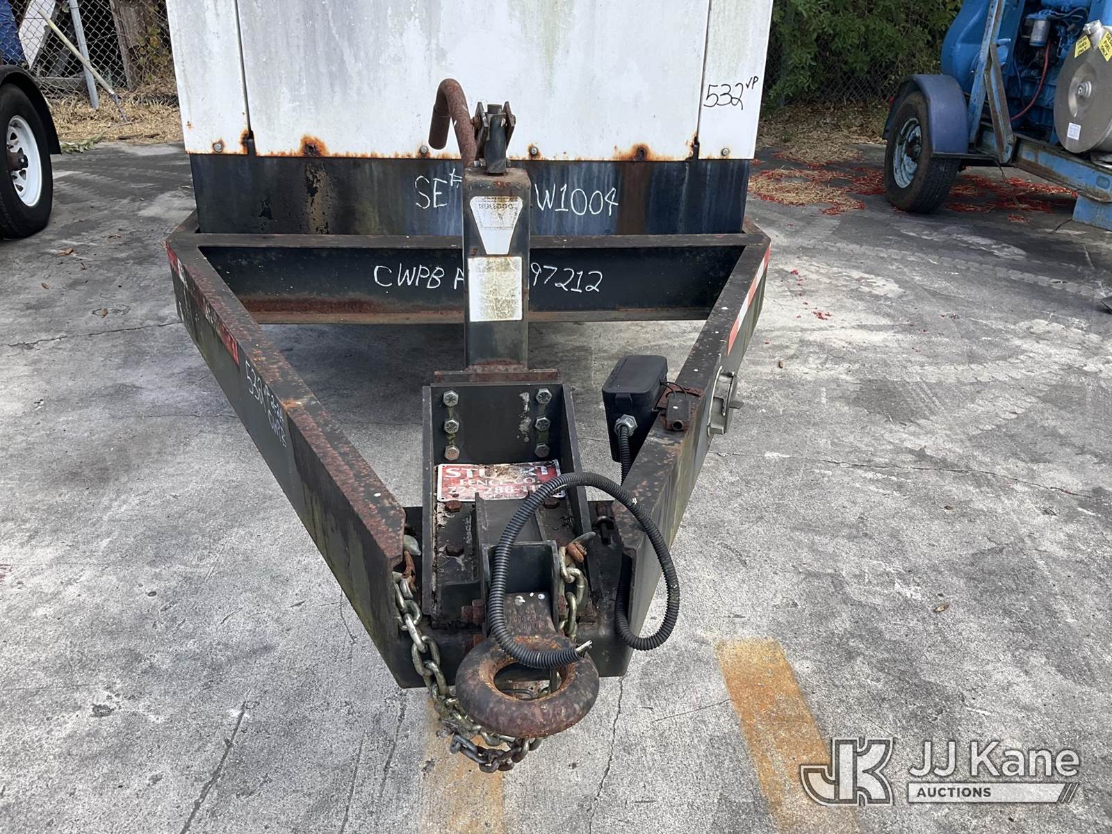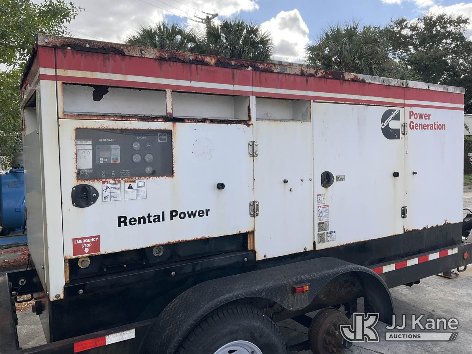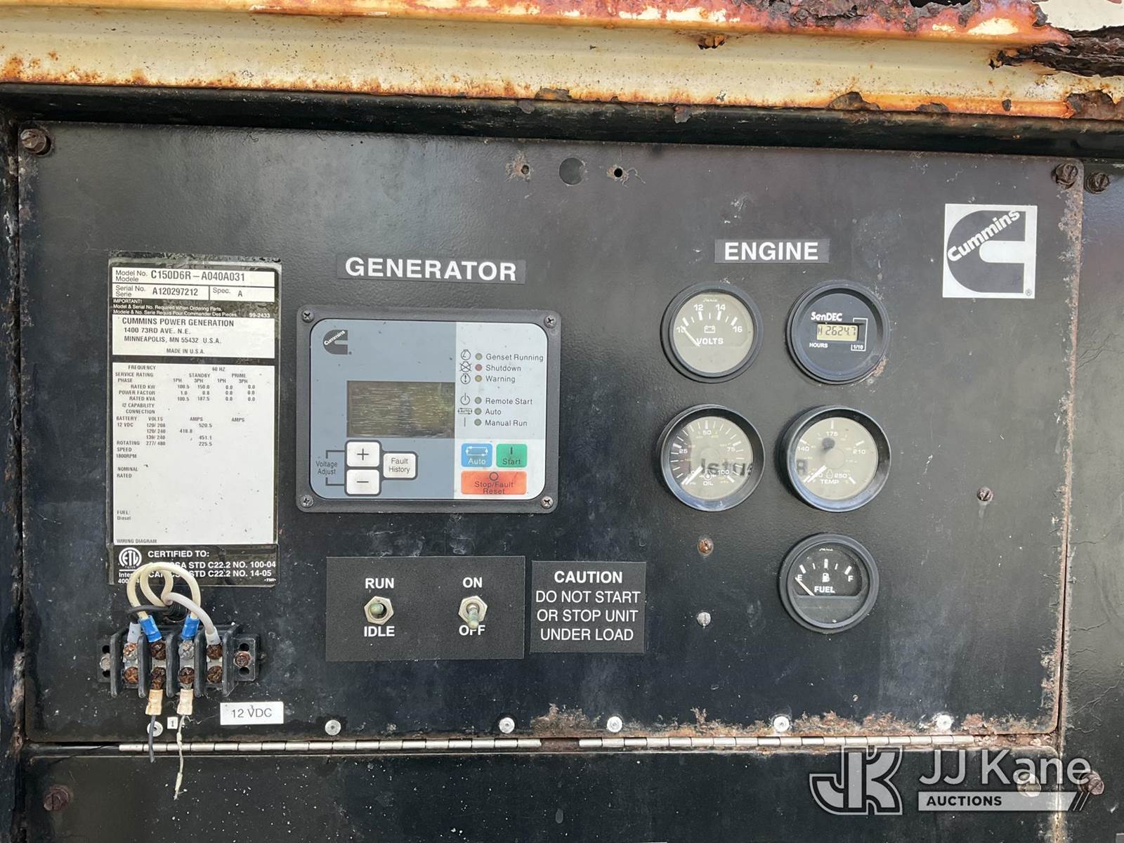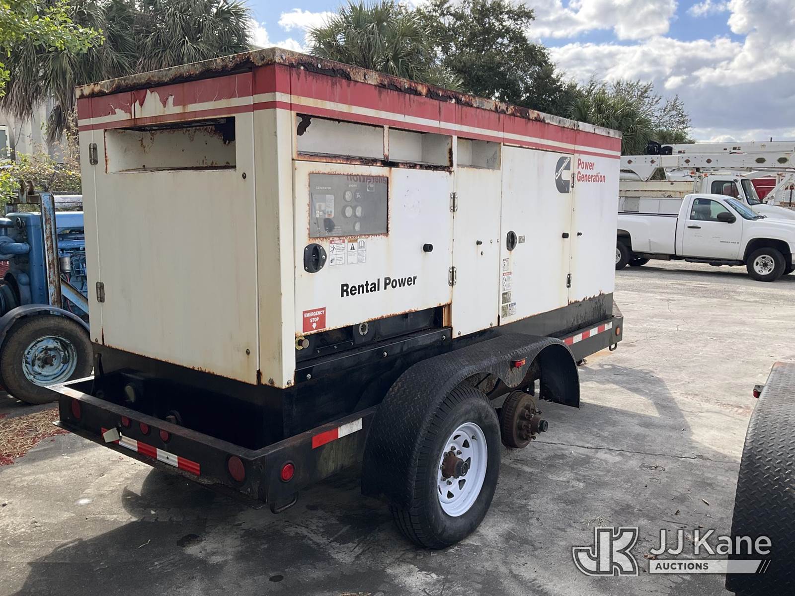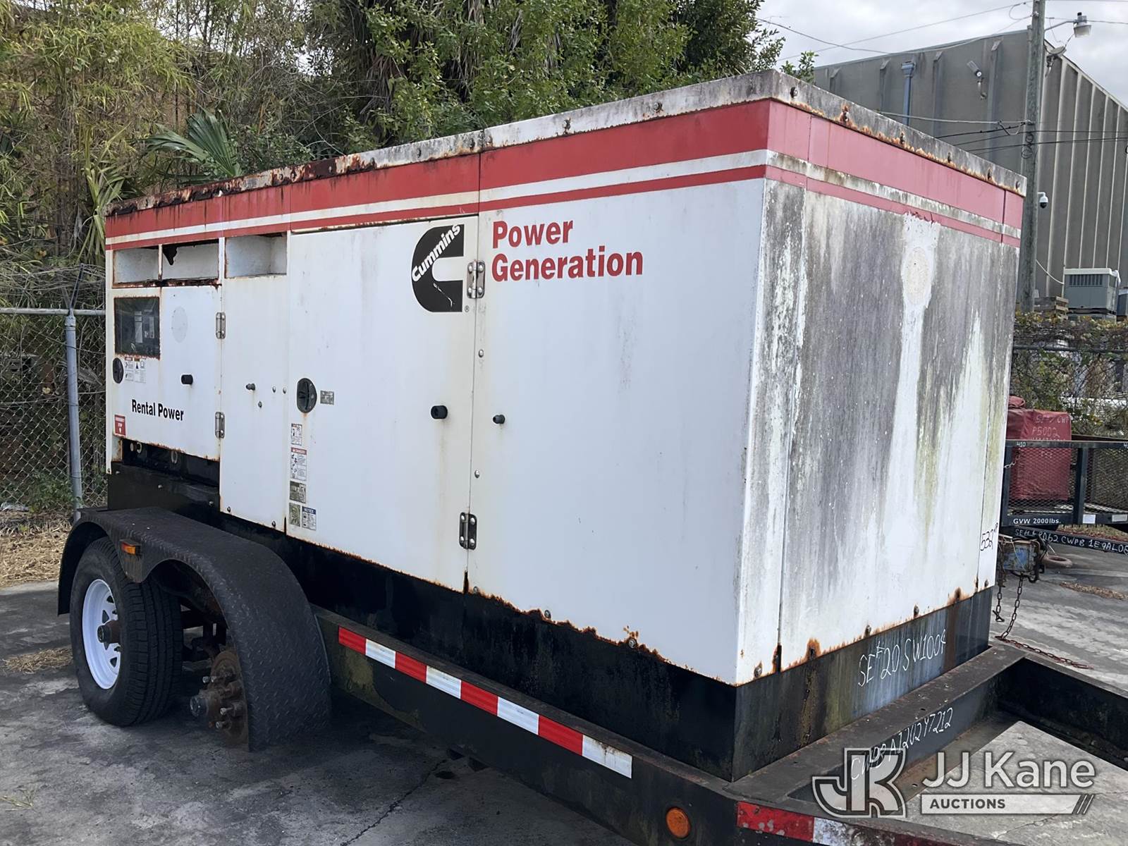 2012 Metro C150D6R-A040A031 Generator 150KW, s/n A120297212, Cummins diesel, t/a trailer mtd. VIN: 1M9DA19B9CM646060 (No Title) (Towable, Electric Hitch Plug Missing, Operating Condition Unknown, Shut-Down & Warning Light On, Body Damage & Frame Rust, Two Front Tires Missing) (Reads 2,624 hours) NOTE: This unit is being sold AS IS/WHERE IS via Timed Auction and is located in West Palm Beach, FL. For Pick Up & Removal information, please contact: Andy Garcia @ 561-215-0085. Removals require 24-hr Notice by Appointment Only, Buyer/Hauler must present copy of Paid-in-Full JJ Kane Release Form upon arrival. Purchaser acknowledges ALL lots must be removed within 10 business days of Auction, or a towing & storage fee may be incurred. (Buyer is responsible for removal. Assistance by consignor or JJ Kane Auctions is not assured.)