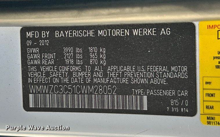 VIN: WMWZC3C51CWM28052