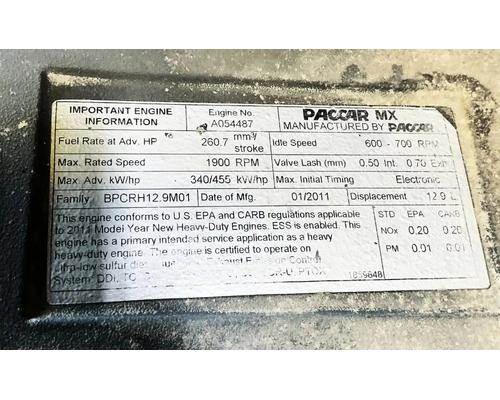 PACCAR MX-13 EPA10, 430HP, S/N- Y018607, 458,729.0 ECM Miles,11,588.5 ECM Hrs. Engine complete and runs good. (Please see video of engine...