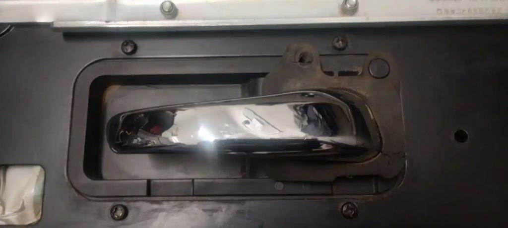 2012 Peterbilt 384 Passenger Side RH Upper Door Lockboard Panel. P/N R25-6067, S56-6025R, R77-6032R.