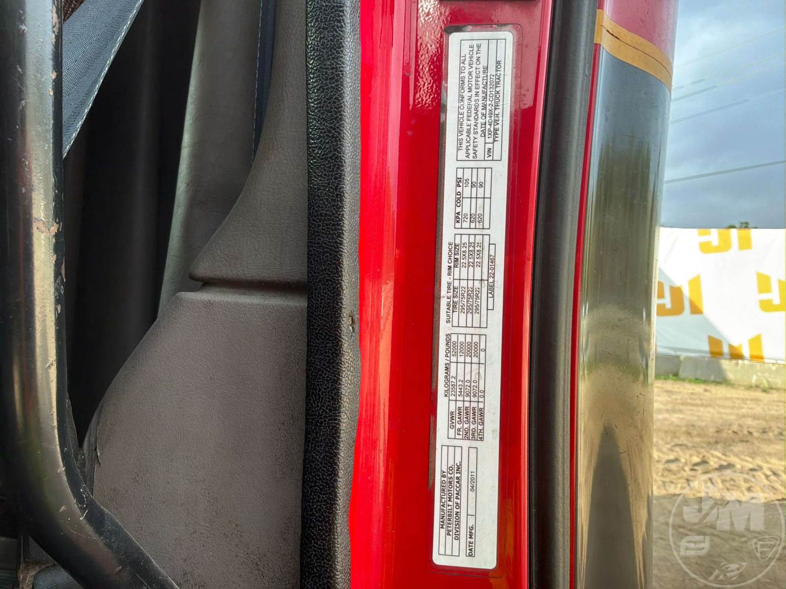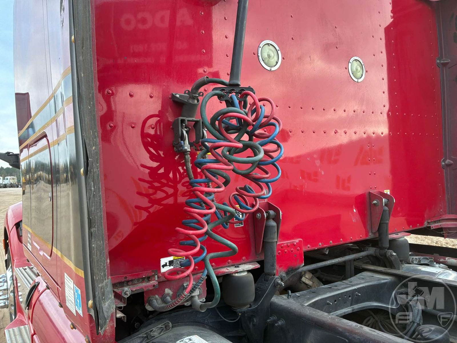 TANDEM AXLE TRUCK TRACTOR, CUMMINS, ISX15, HP 450, EATON FULLER, 13 SPEED, AIR RIDE SUSPENSION, DRUM, 208 " WB, C/A: 90", 12K FRONTS, 40K REARS, 52000 LBS GVWR, A/C, DUAL AIR SEATS, CRUISE CONTROL, POWER WINDOWS, POWER MIRRORS, ENGINE BRAKE, DUAL FUEL TANKS, AIR RIDE CAB, SLEEPER SIZE 52", ALUM DISC WHEELS, AIR SLIDE FIFTH WHEEL, 295/75R22.5 TIRES, HOUR METER READS: CNV, ODOMETER READS: CNV