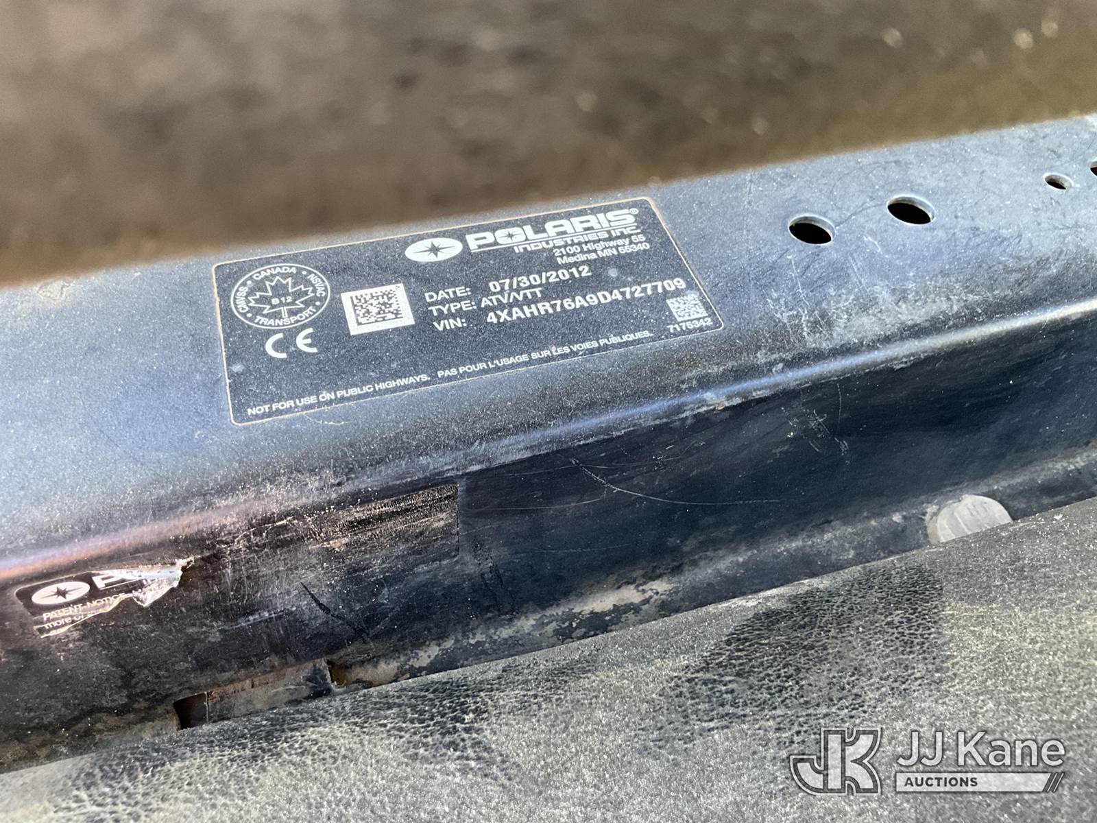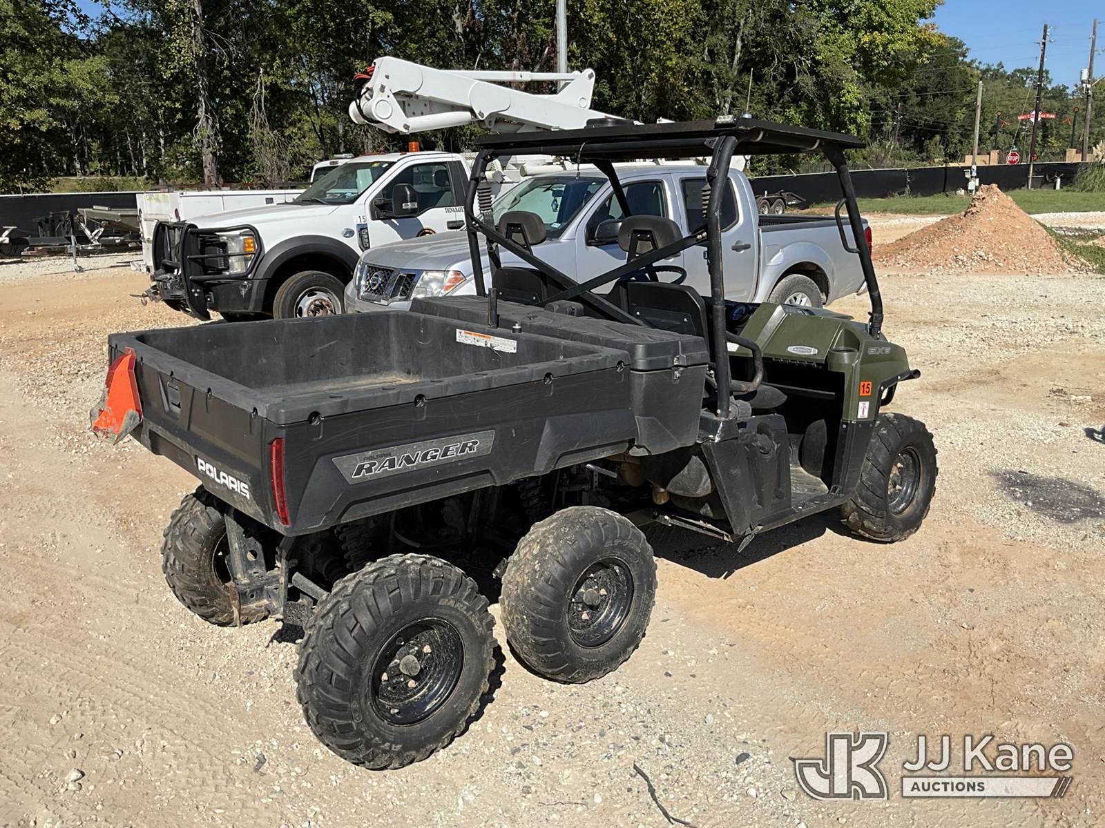2012 Polaris 800 EFI Ranger 6x6 All-Terrain Vehicle, s/n 4XAHR76A9D472709, Auto, gas, with front winch, (2,130 miles) (Runs(with jump). Moves. Blown Cylinoid) (Reads 457 hours) NOTE: This unit is being sold AS IS/WHERE IS via Timed Auction and is located in Gilmer, TX. For more information & removal arrangements please contact David Lange @ 817-602-1241 (Buyer is responsible for removal. Assistance by consignor or JJ Kane Auctioneers is not assured.)