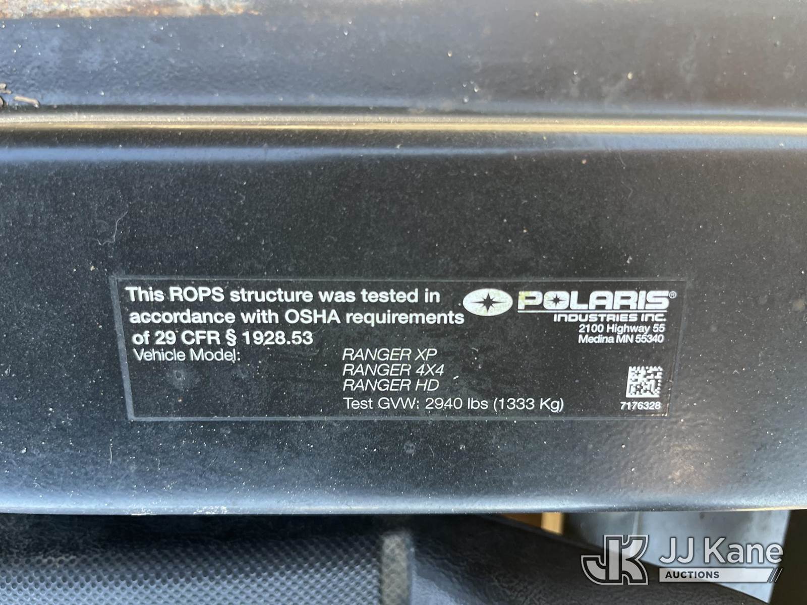 2012 Polaris Ranger XP Side-By-Side, s/n 4XATH76A8CE640180, 760cc Gas, Auto, (Runs & Moves) (Reads 38 hours) NOTE: This unit is being sold AS IS/WHERE IS via Timed Auction and is located in Pelham, TN. For more information & removal arrangements please contact Dalton Childers @ 629-395-3117. (Buyer is responsible for removal. Assistance by consignor or JJ Kane Auctions is not assured.)