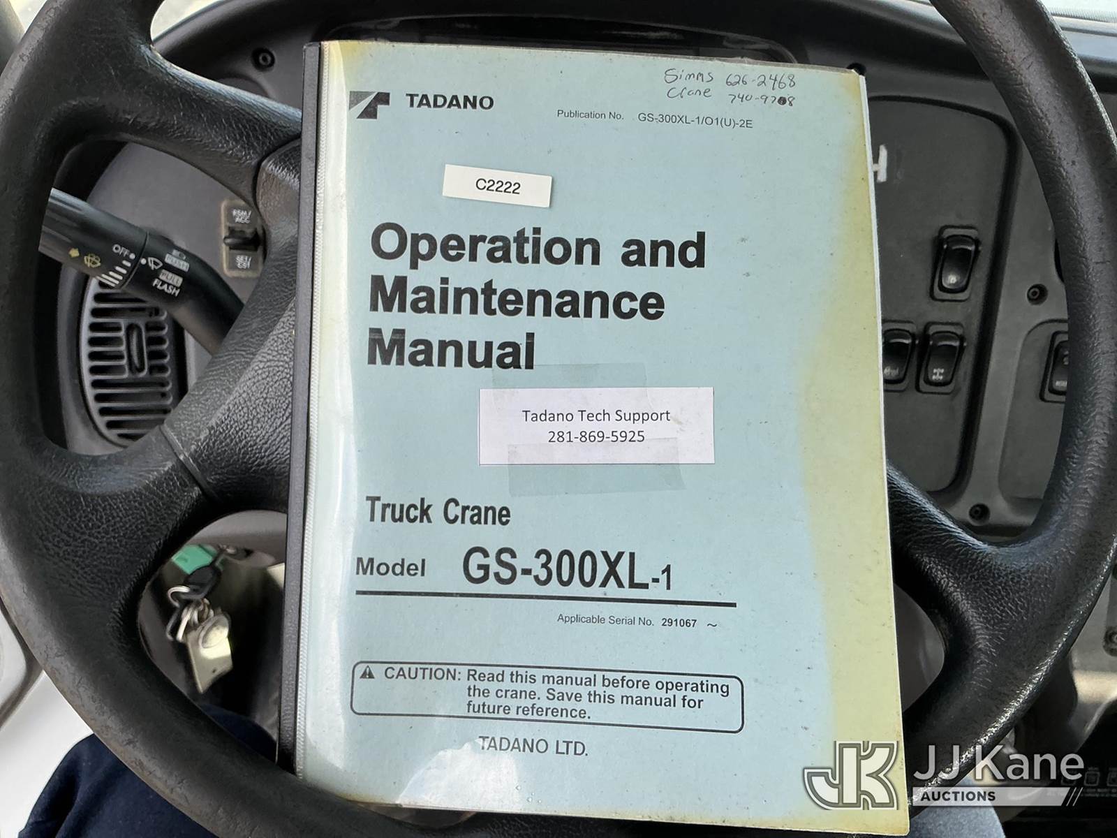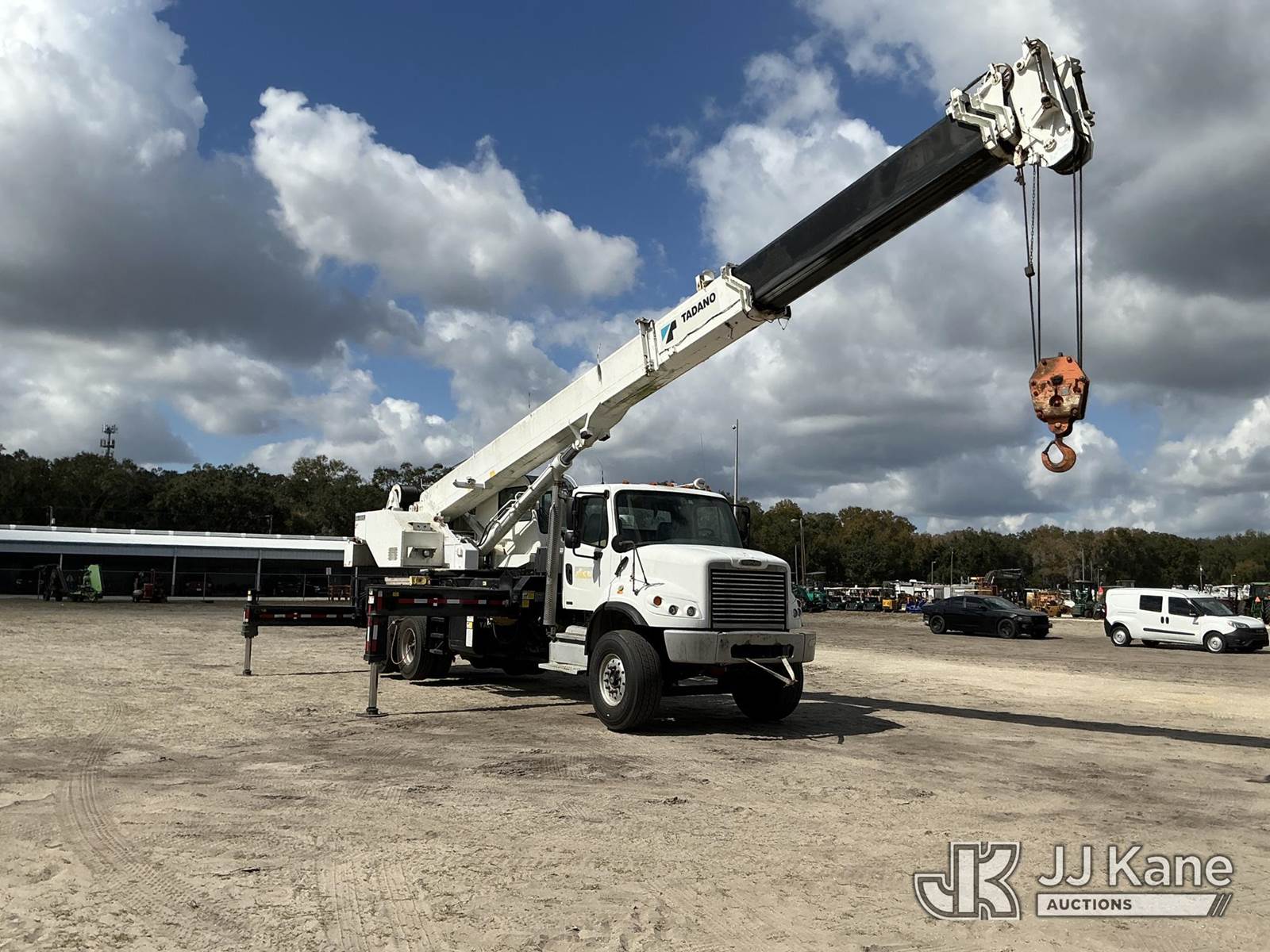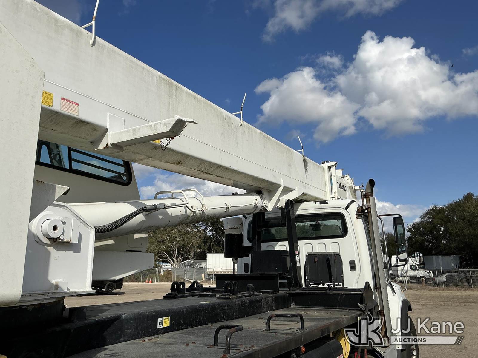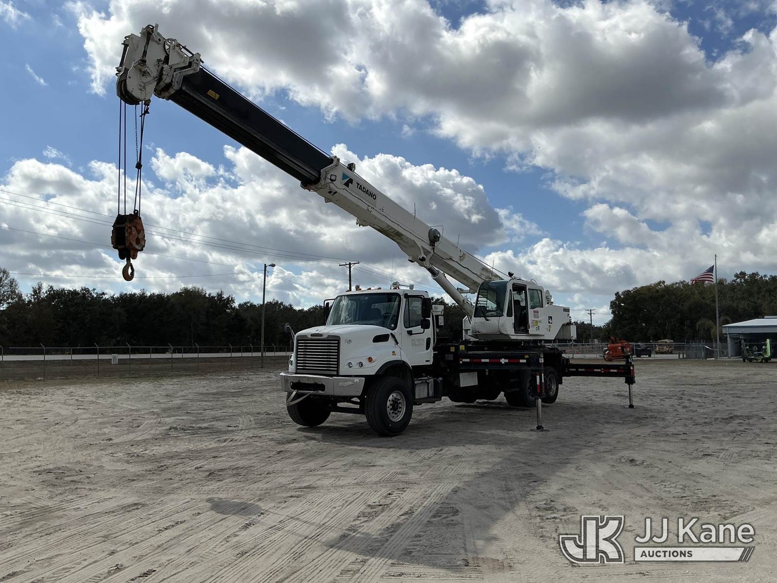 Tadano GS-300XL, 30-Ton Hydraulic Truck Crane s/n 291092, with 103 ft. sheave height, 32.8 ft. to 93.5 ft. of 4 section hyd boom, heel winch, hook block, anti two-block, Tadano LMI, enclosed riding console & 4 hyd out and down outriggers, rear mounted on 2012 Freightliner M2 106 Flatbed Truck, s/n 1FVHC3BS3CHBS4190, 8.3L L6 diesel, 6X4, 8-spd + Lo & Lo-Lo, A/C, with Tire Boss pressure system, (073520m miles) Electric Company Owned and Maintained. (Runs, Moves & Operates) (Radio Not Included) (exempt from odometer disclosure) (FL Residents Purchasing Titled Items – tax, title & registration fees will be collected at the maximum rate of $400.00 under 25,999 and $800.00 for Over 26,000 and $250.00 trailers – Proof of insurance is mandatory; Out of State Residents Purchasing Title Items – tax will be collected based upon your state rate) (Reads 9,385 hours) This is a Titled Item NOTE: This unit is being sold AS IS/WHERE IS via Timed Auction and is located in Thonotosassa, FL. Inspection & preview days for this unit are the 2 business days prior to the first day of items closing for this auction, item is located at 11720 N US 301 Thonotosassa, Fl 33592 and hours of operations are 8a-4p. For pre-sale questions, please contact Office Staff @ (813) 986-2485. (Manuals provided in cab) (Buyer is responsible for removal. Assistance by consignor or JJ Kane Auctions is not assured.)