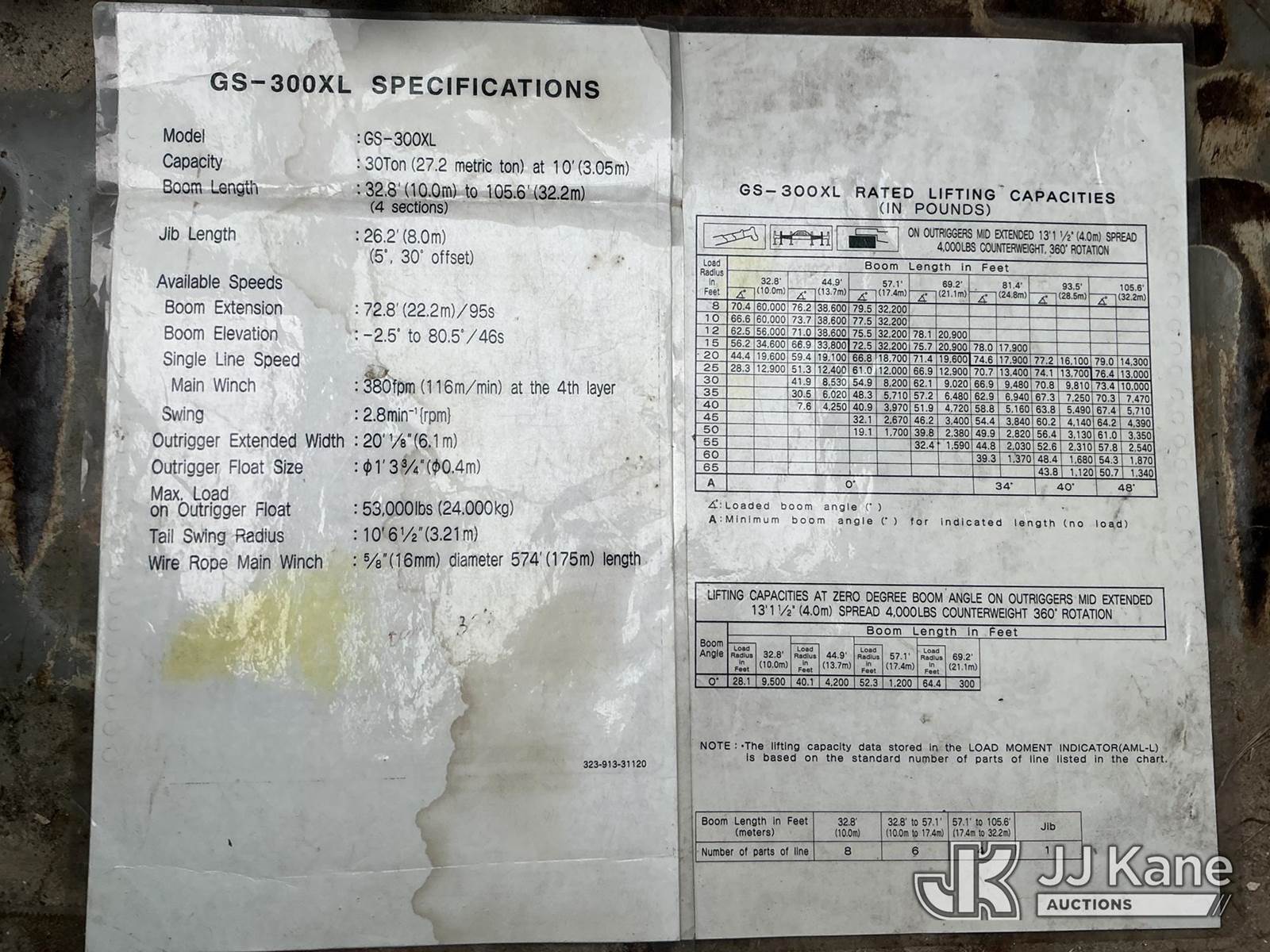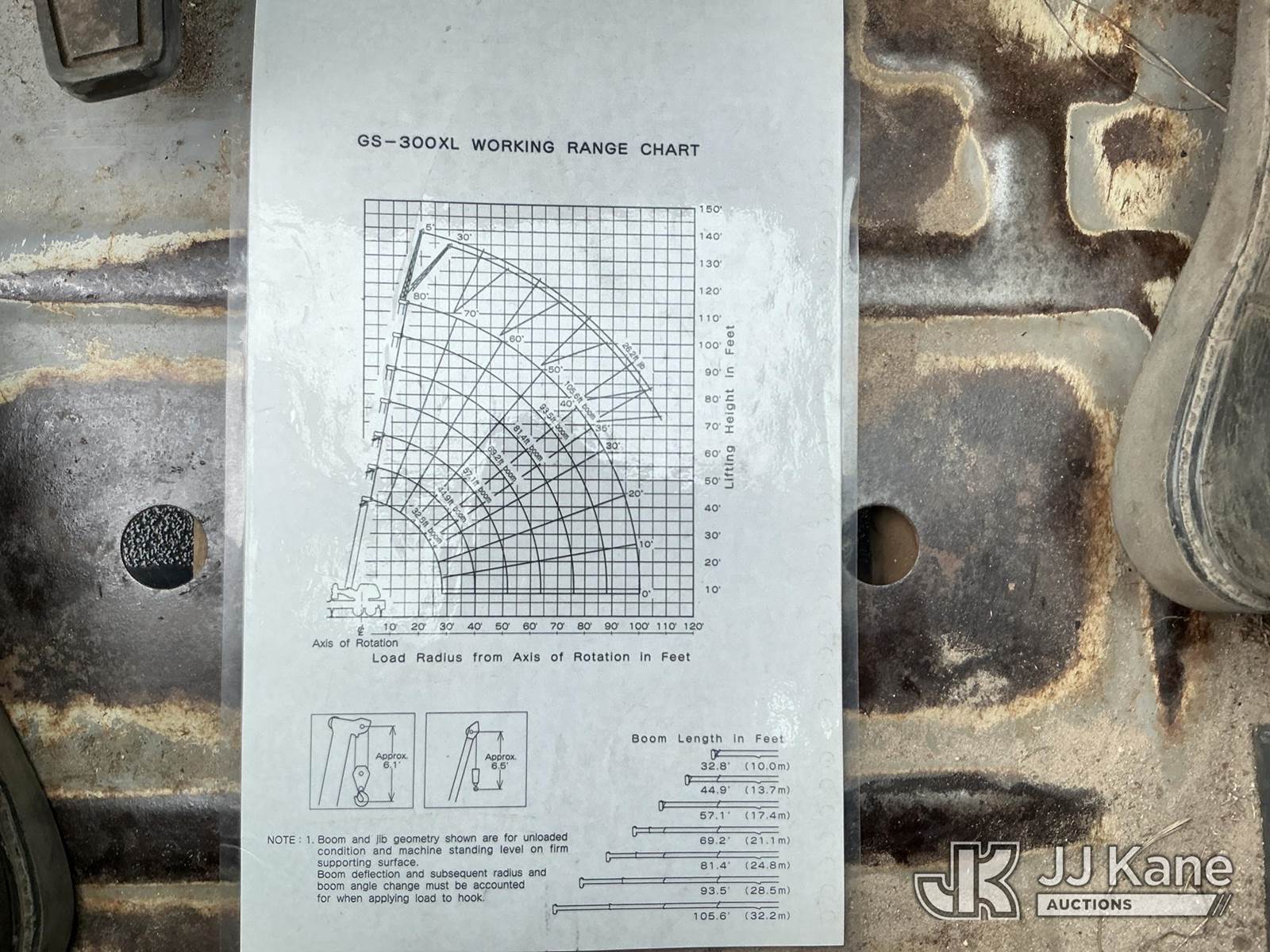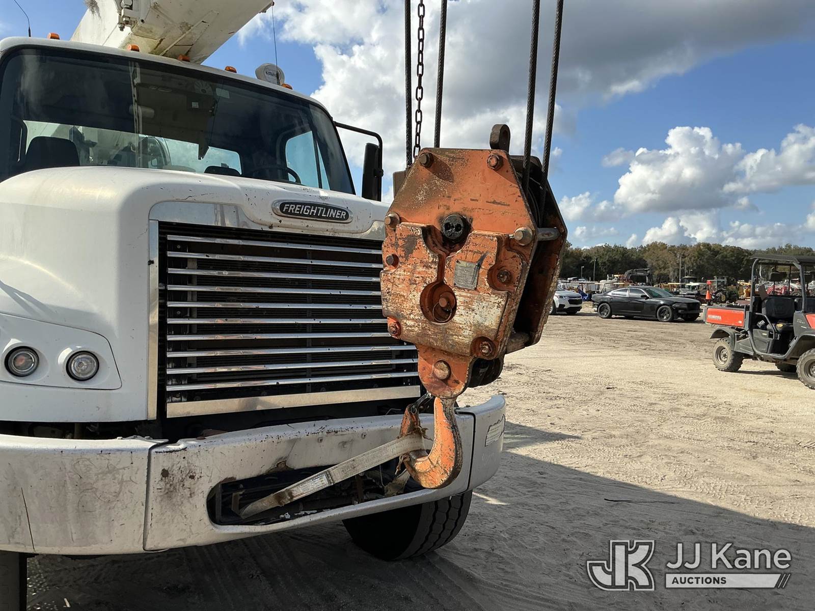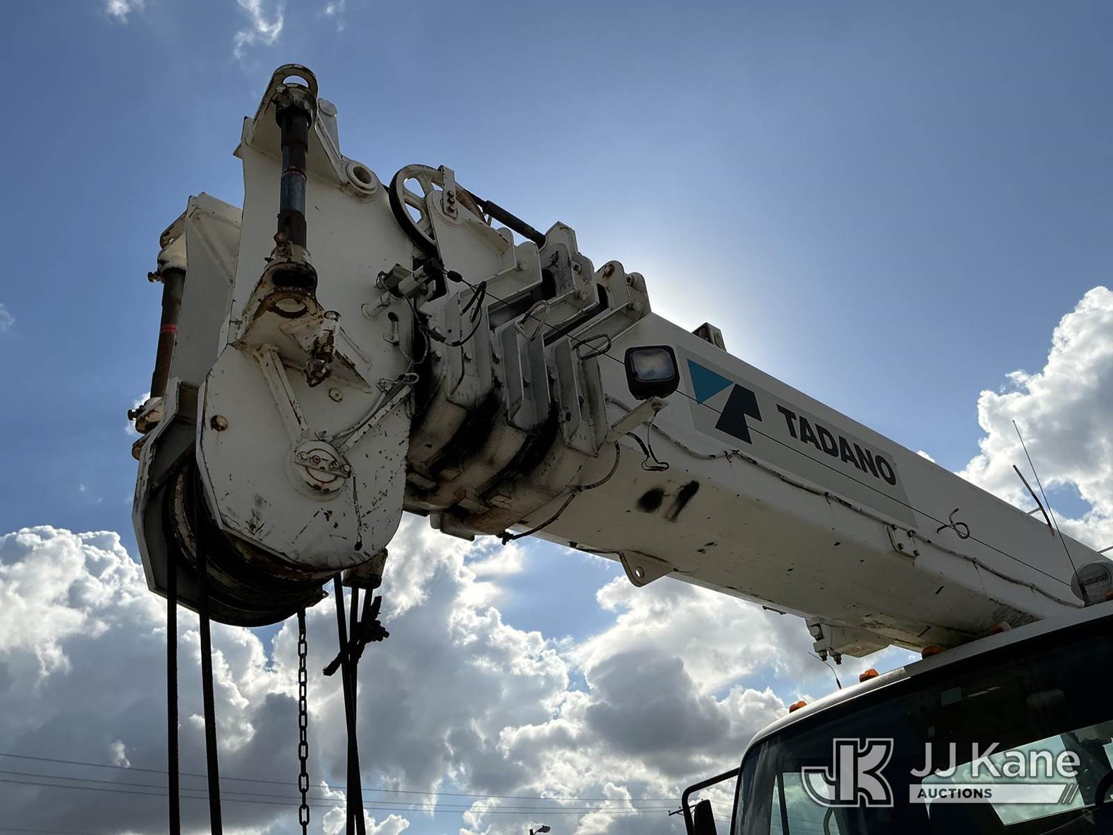 Tadano GS-300XL, 30-Ton Hydraulic Truck Crane s/n 291092, with 103 ft. sheave height, 32.8 ft. to 93.5 ft. of 4 section hyd boom, heel winch, hook block, anti two-block, Tadano LMI, enclosed riding console & 4 hyd out and down outriggers, rear mounted on 2012 Freightliner M2 106 Flatbed Truck, s/n 1FVHC3BS3CHBS4190, 8.3L L6 diesel, 6X4, 8-spd + Lo & Lo-Lo, A/C, with Tire Boss pressure system, (073520m miles) Electric Company Owned and Maintained. (Runs, Moves & Operates) (Radio Not Included) (exempt from odometer disclosure) (FL Residents Purchasing Titled Items – tax, title & registration fees will be collected at the maximum rate of $400.00 under 25,999 and $800.00 for Over 26,000 and $250.00 trailers – Proof of insurance is mandatory; Out of State Residents Purchasing Title Items – tax will be collected based upon your state rate) (Reads 9,385 hours) This is a Titled Item NOTE: This unit is being sold AS IS/WHERE IS via Timed Auction and is located in Thonotosassa, FL. Inspection & preview days for this unit are the 2 business days prior to the first day of items closing for this auction, item is located at 11720 N US 301 Thonotosassa, Fl 33592 and hours of operations are 8a-4p. For pre-sale questions, please contact Office Staff @ (813) 986-2485. (Manuals provided in cab) (Buyer is responsible for removal. Assistance by consignor or JJ Kane Auctions is not assured.)