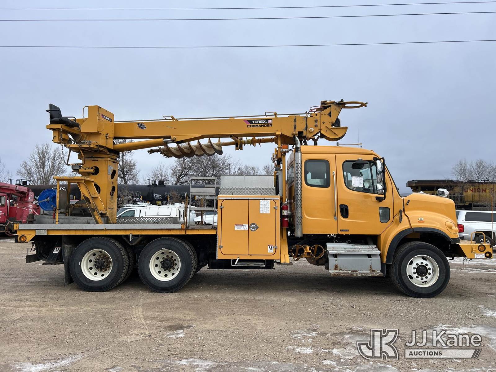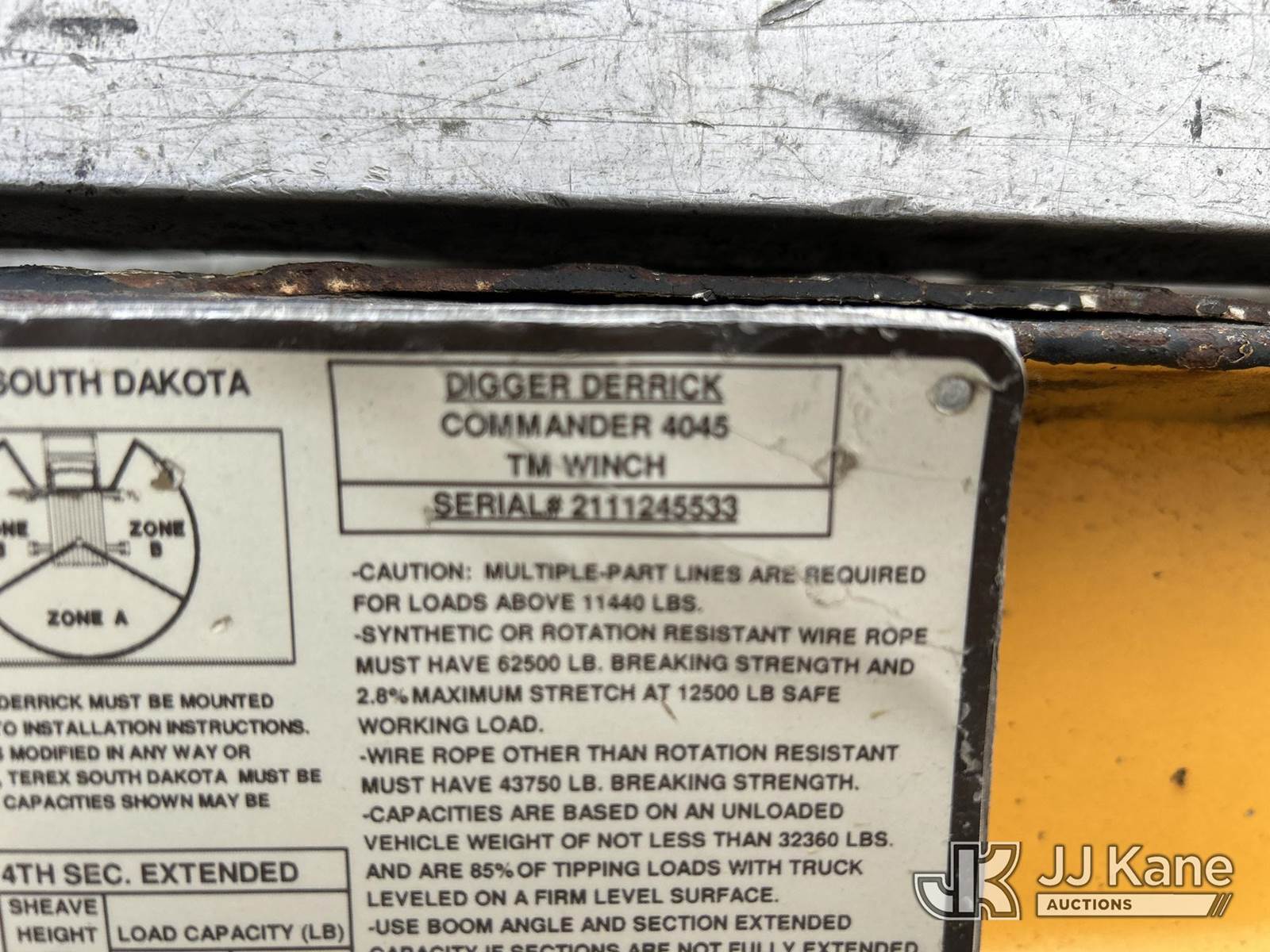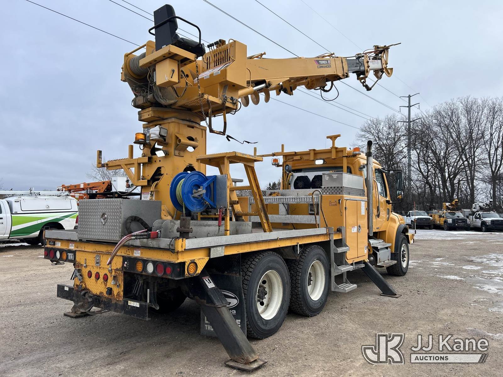 Terex Commander 4045, 26,100 Lb Digger Derrick s/n 211124545533, with 45ft sheave height, 3 stage boom, 2spd digger, pole guides, heel winch, remote control & riding console, rear mounted on 2012 Freightliner M2 106 T/A Flatbed/Utility Truck, 8.3L diesel, Auto, 6X4, diesel, A/C, with front winch, (39,079 miles) Co-op Owned (Runs, Moves & Upper Operates) This is a Titled Item NOTE: This unit is being sold AS IS/WHERE IS via Timed Auction and is located in Shakopee, MN. Inspection & preview days for this unit are the 2 business days prior to the first day of items closing for this auction, item is located at 1109 Stagecoach Rd Shakopee, MN 55379 and hours of operations are 8a-3p. For pre-sale questions, please contact Joe Hause @ (651) 421-3305. (Missing manuals, See Auction Company for Manufacturers Information to obtain manuals) (Buyer is responsible for removal. Assistance by consignor or JJ Kane Auctions is not assured.)