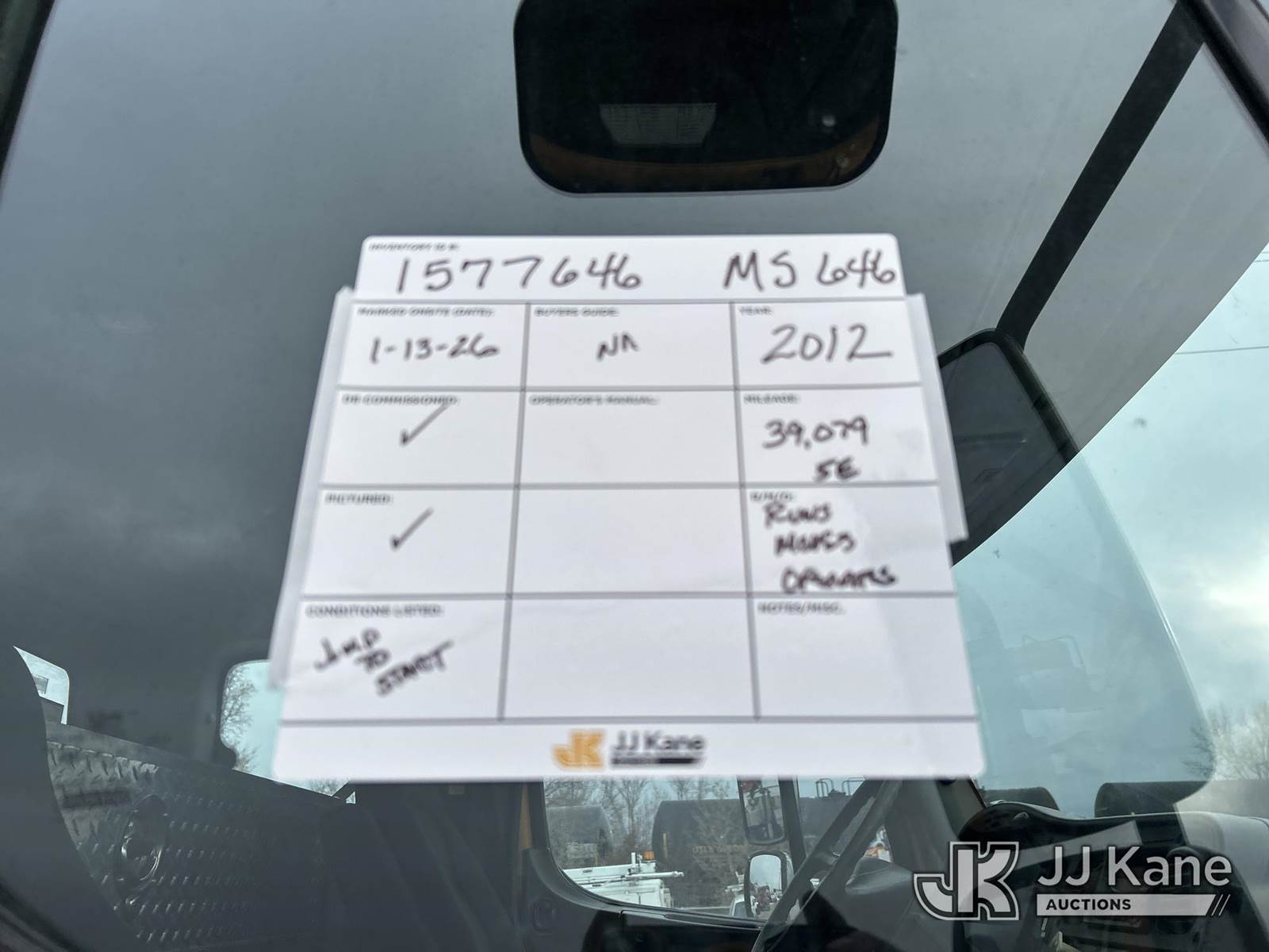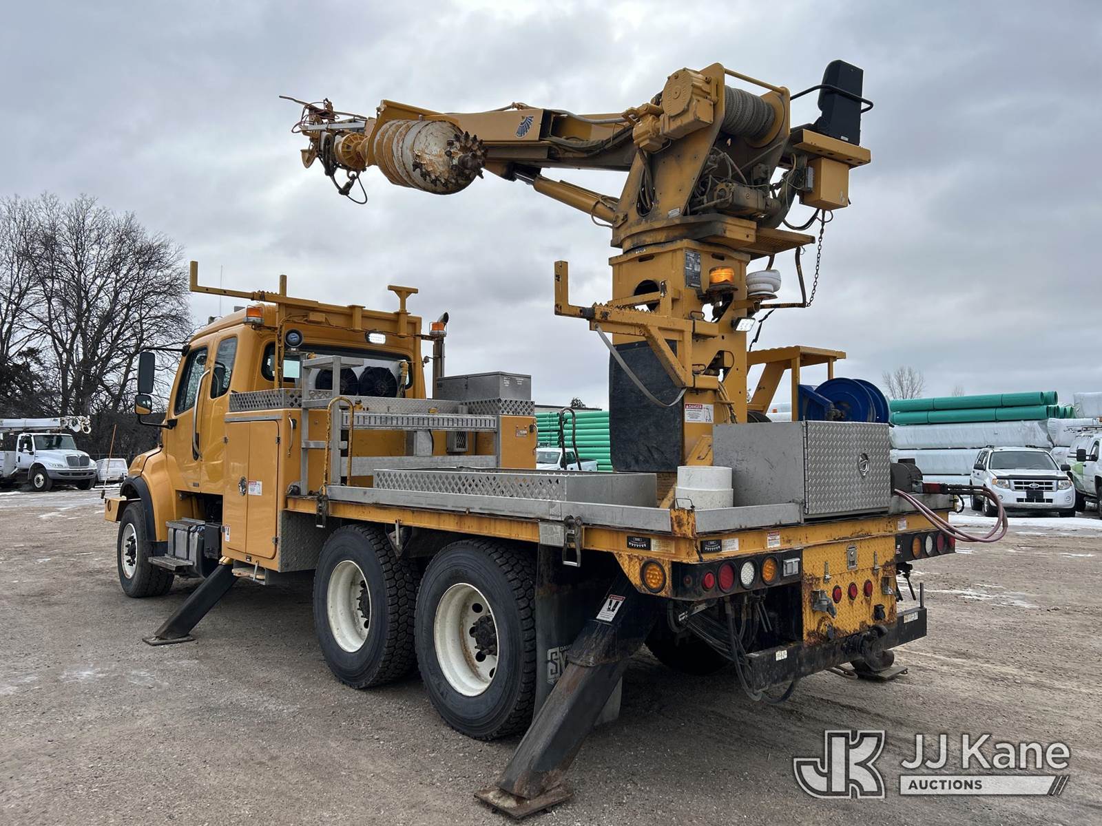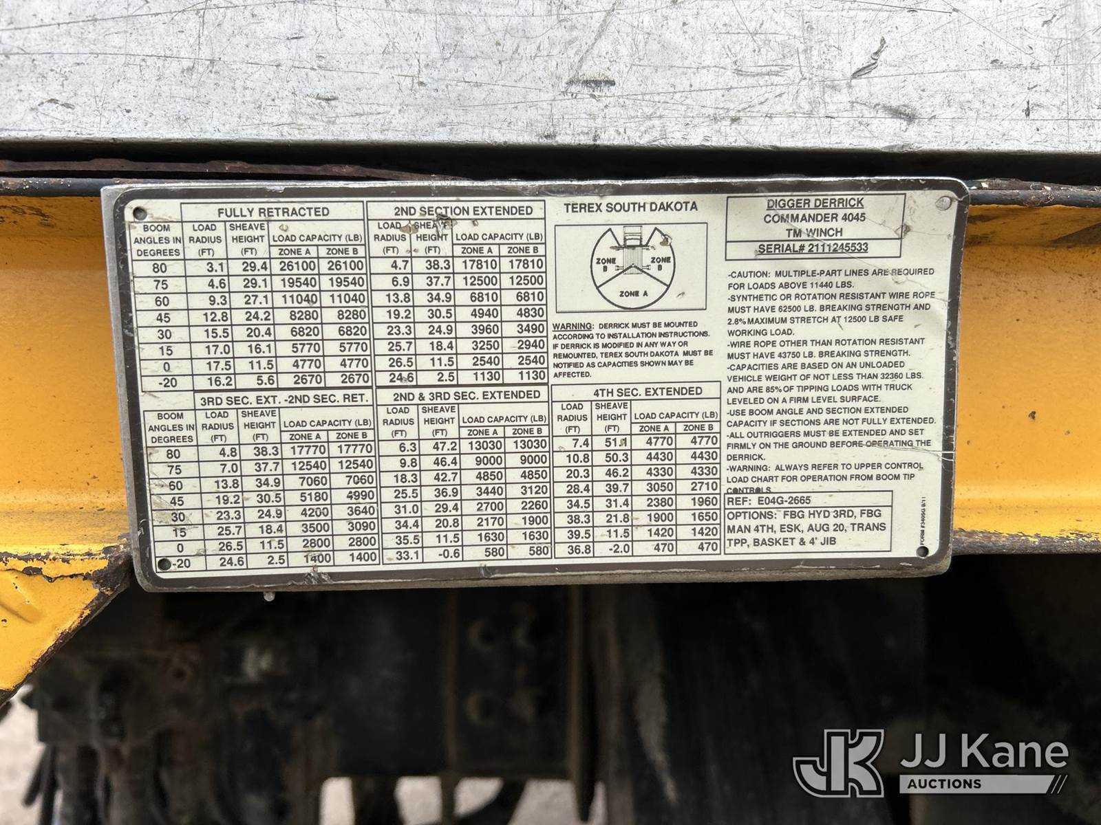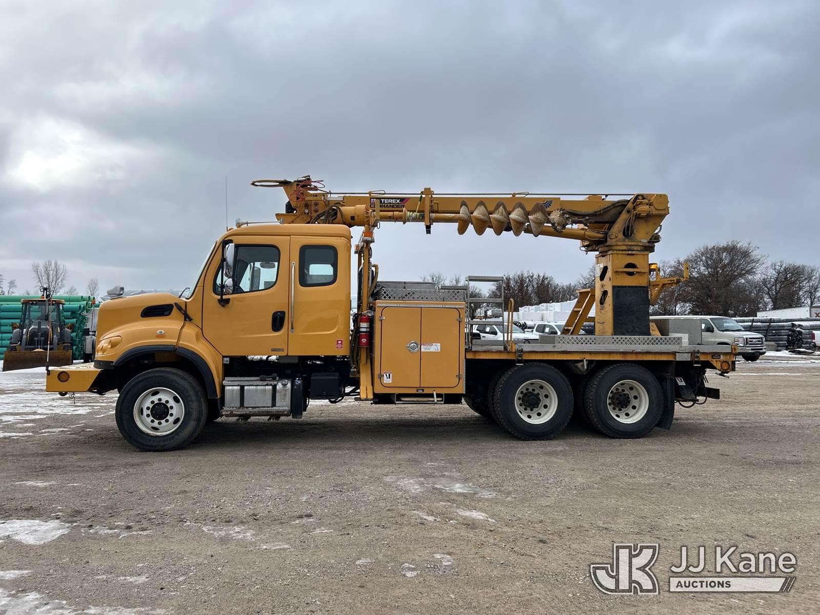 Terex Commander 4045, 26,100 Lb Digger Derrick s/n 211124545533, with 45ft sheave height, 3 stage boom, 2spd digger, pole guides, heel winch, remote control & riding console, rear mounted on 2012 Freightliner M2 106 T/A Flatbed/Utility Truck, 8.3L diesel, Auto, 6X4, diesel, A/C, with front winch, (39,079 miles) Co-op Owned (Runs, Moves & Upper Operates) This is a Titled Item NOTE: This unit is being sold AS IS/WHERE IS via Timed Auction and is located in Shakopee, MN. Inspection & preview days for this unit are the 2 business days prior to the first day of items closing for this auction, item is located at 1109 Stagecoach Rd Shakopee, MN 55379 and hours of operations are 8a-3p. For pre-sale questions, please contact Joe Hause @ (651) 421-3305. (Missing manuals, See Auction Company for Manufacturers Information to obtain manuals) (Buyer is responsible for removal. Assistance by consignor or JJ Kane Auctions is not assured.)
