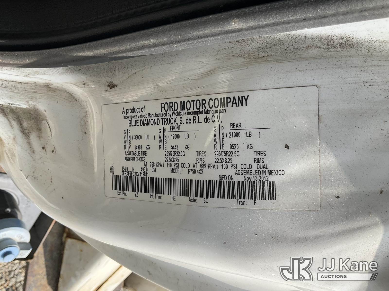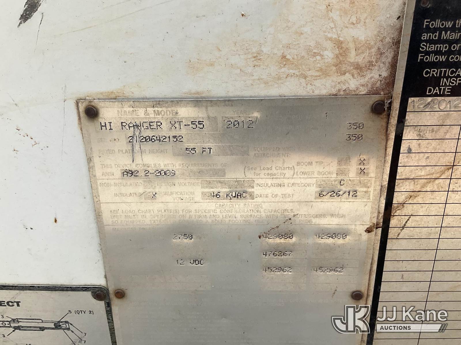 Terex XT55, 60 ft, Over-Center Bucket Truck s/n 2120642152, with single-man bucket & 2 hyd outriggers, mounted behind cab on 2012 Ford F750 Chipper Dump Truck, Cummins 6.7L Auto, 4X2, diesel, A/C, (71,431 miles) (Runs, Moves & Upper Operates) (Low Fuel) This is a Titled Item NOTE: This unit is being sold AS IS/WHERE IS via Timed Auction and is located in Shrewsbury, MA. Inspection & preview days for this unit are the 2 business days prior to the first day of items closing for this auction, item is located at 11 Fortune Blvd Shrewsbury, MA 01545 and hours of operations are 8a-4p. (Manuals provided in cab) (Buyer is responsible for removal. Assistance by consignor or JJ Kane Auctioneers is not assured.)