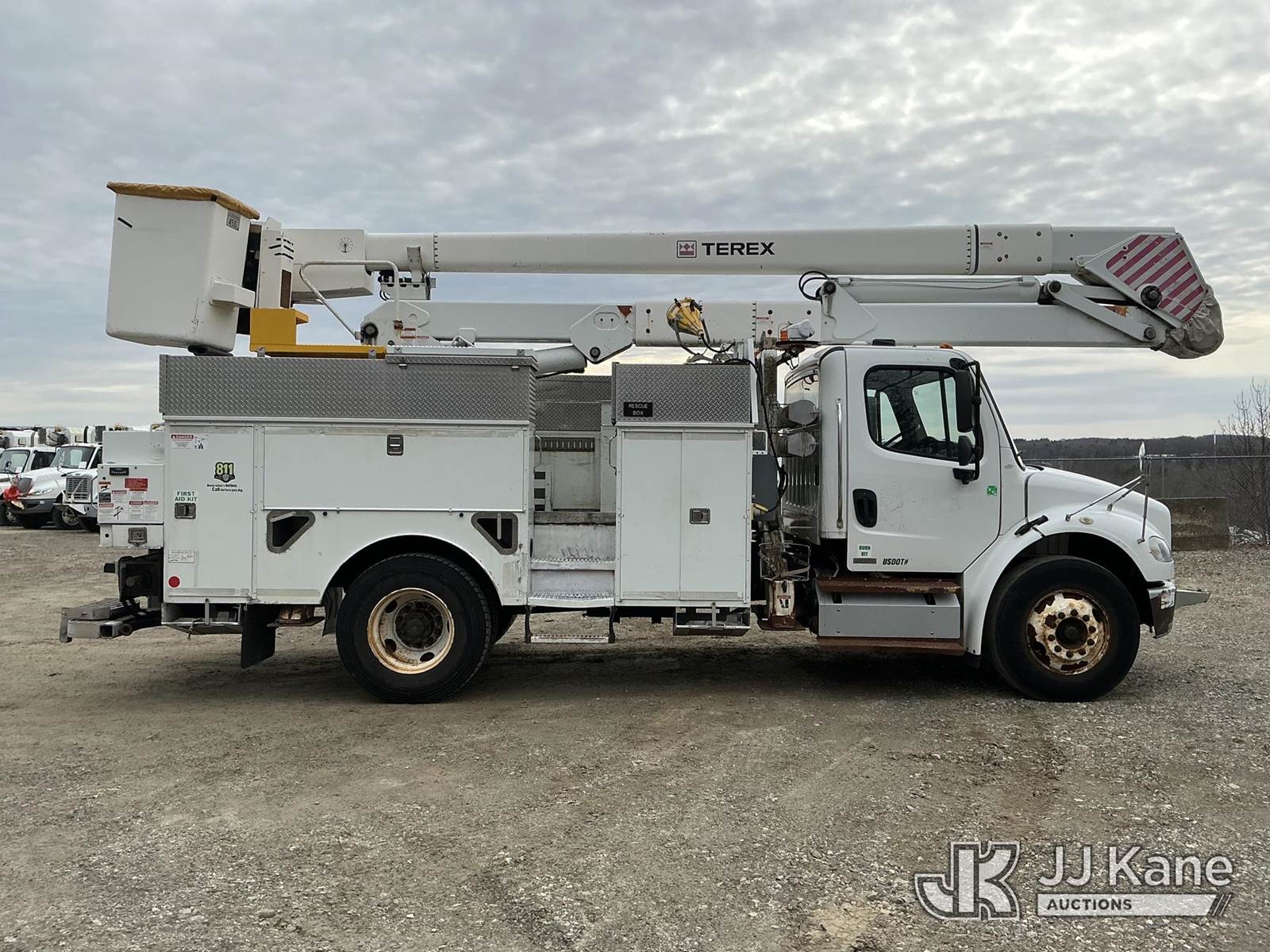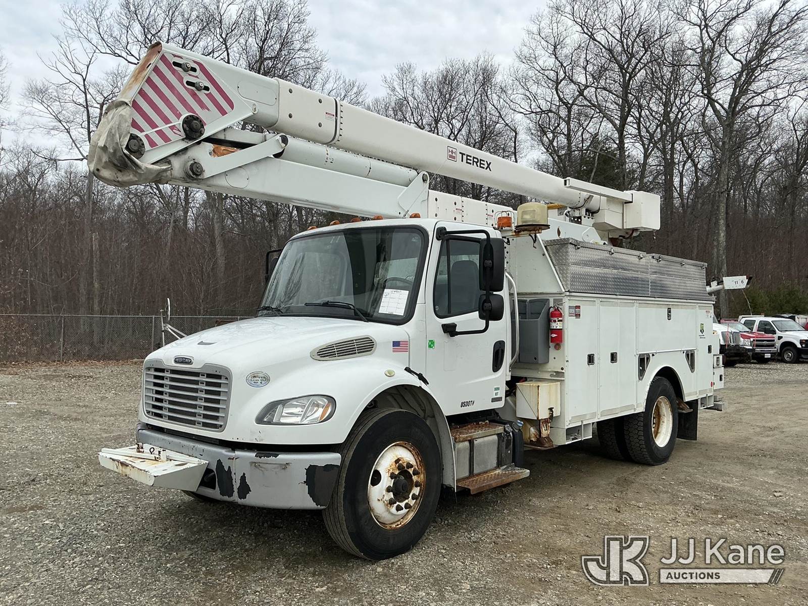 Terex/HiRanger HR-52MH, 57 ft, Material Handling Bucket Truck s/n 21100444336, with single-man bucket & 4 hyd outriggers, rear mounted on 2012 Freightliner M2 106 Utility Truck, Cummins 6.7L 4X2, diesel, Auto, A/C, (79,443 miles) (Runs, Moves & Upper Operates) (Check Engine Light On) (Reads 10,091 hours) This is a Titled Item NOTE: This unit is being sold AS IS/WHERE IS via Timed Auction and is located in Shrewsbury, MA. Inspection & preview days for this unit are the 2 business days prior to the first day of items closing for this auction, item is located at 11 Fortune Blvd Shrewsbury, MA 01545 and hours of operations are 8a-4p. For pre-sale questions, please contact Rob Gifford @ (508) 864-4126. (Manuals provided in cab) (Buyer is responsible for removal. Assistance by consignor or JJ Kane Auctions is not assured.)